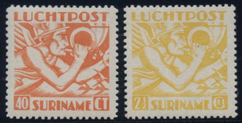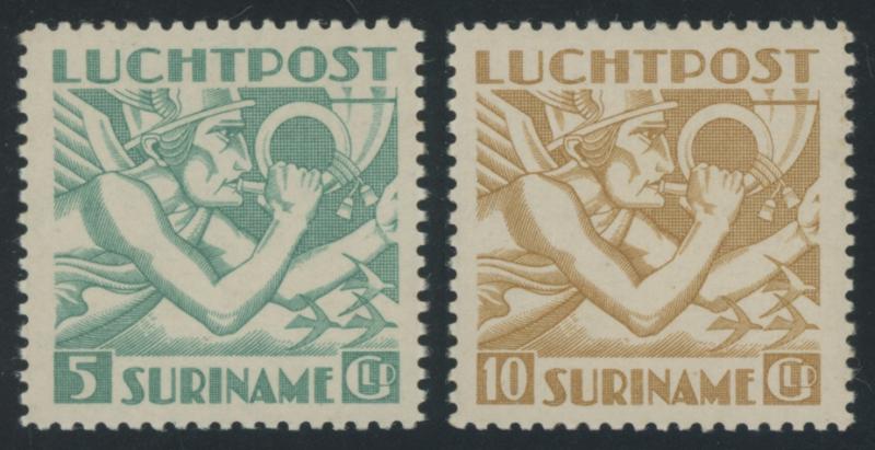 SURINAME: 1941 Posthorn Airmails 10c to 10g set SG 276-283, generally well-centred, some with small hinge remainders, the 5g & 10g