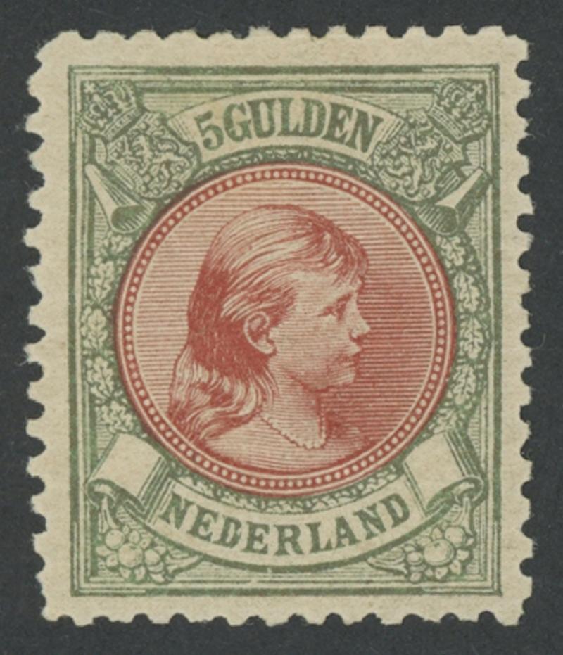 1891-98 Queen Wilhelmina 5g lake & bronze-green Perf 11 SG 165 (Michel 48C), well-centred, a couple of slightly uneven perfs, small
