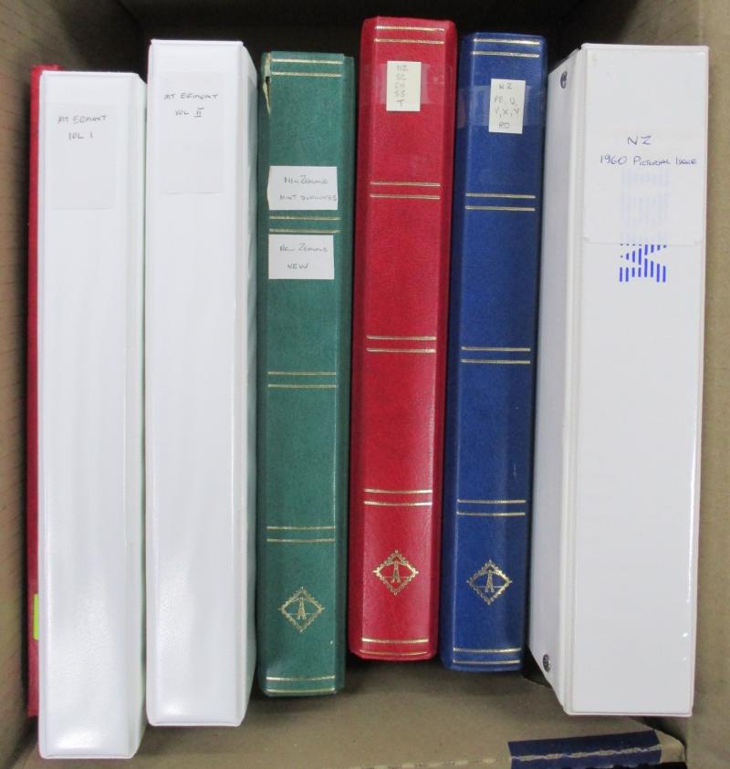 Carton of mint & used collections including QV with 1898 Pictorials to 2/- used & 5/- (fiscal cancel) including 2½d 'LAKE WAKATIPU'