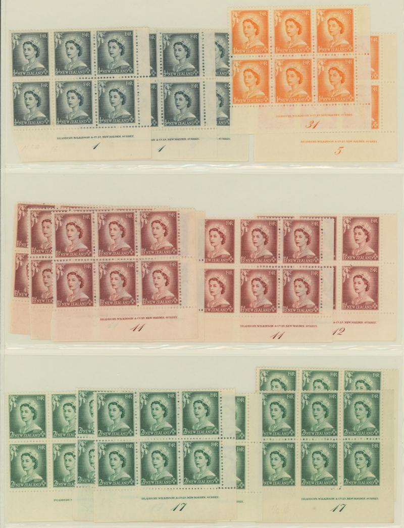 similar KGVI and QEII Pre-Decimal blocks through to the mid 1990s with very high face value; varieties from 1960 Definitives through to 1967 Decimal Definitives with a few later issues including plated blocks, also coils & starters; shades by