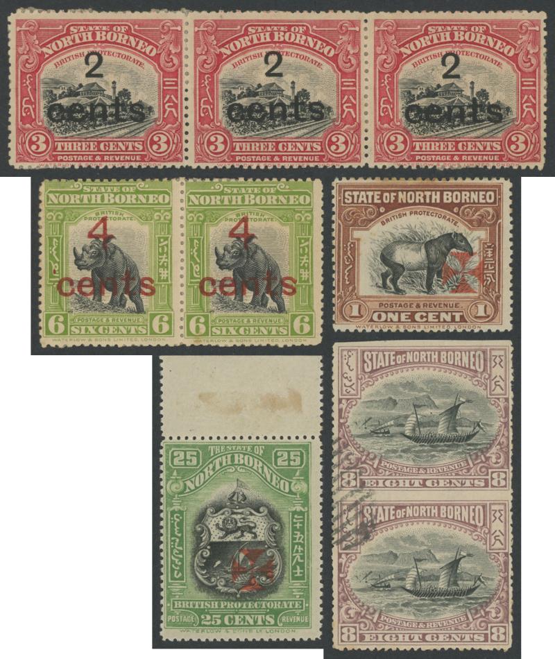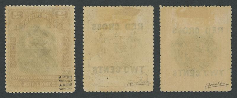 Surcharges '2/cents' on 3c strip of 3 & '4/cents' on 6c pair each with one unit with Inverted 's' in 'cents' (unused), 1916 Maltese Cross in Vermilion on 1c Perf 14½-15½ (*, toning) & 25c (marginal, unmounted), 1918 'RED CROSS/TWO CENTS' set to $2,