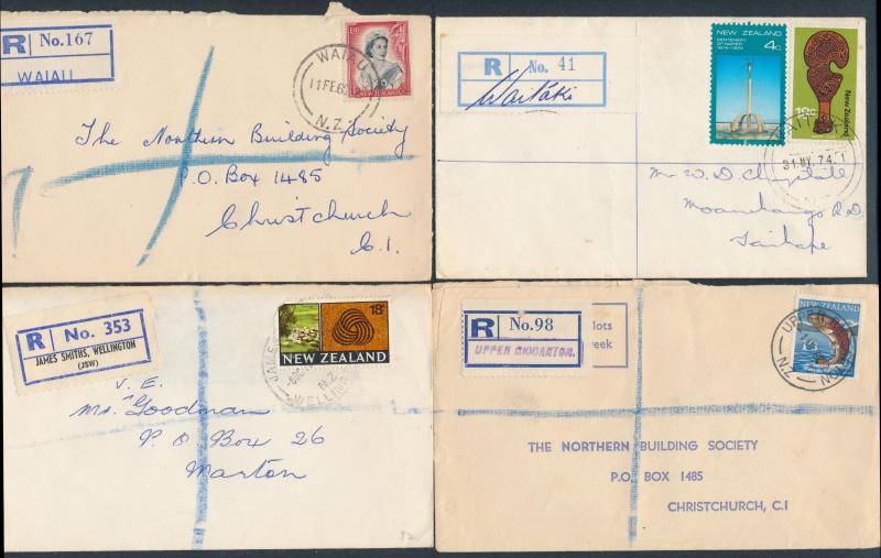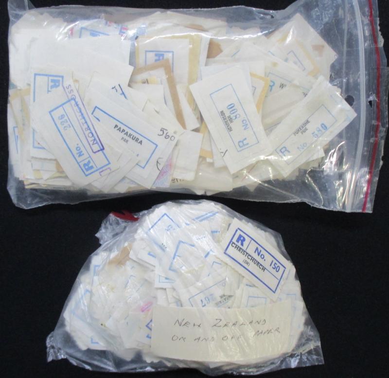 REGISTRATION LABELS: Mostly Decimal period unsorted accumulation in packets etc and about 200 mostly commercial registered covers