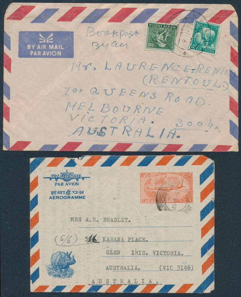 Australia x8 (one with 'AUSTRALIAN/PROTECTIVE SERVICE/ 03DEC1997/ADELAIDE/MAIL SCANNED' datestamp), a few more with different designs, cover with bogus Lagos meter, also implicated covers with genuine stamps of Nigeria or Togo (to America). The best