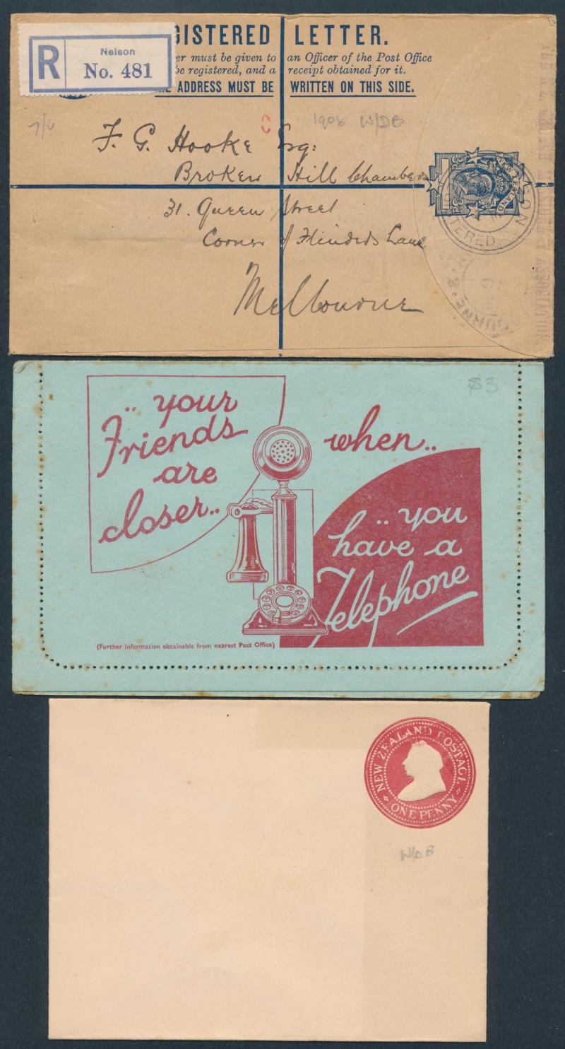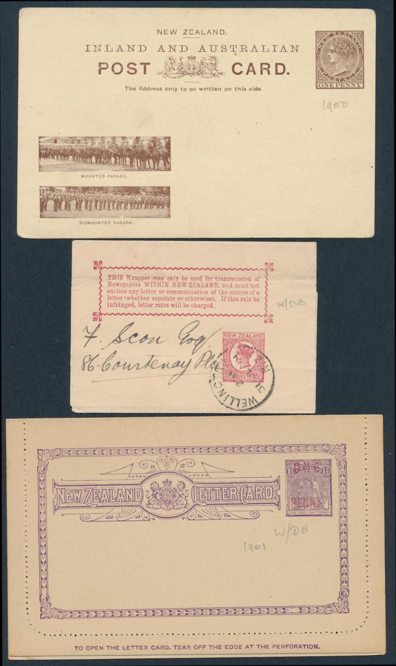 POSTAL STATIONERY: Selection of 1899 to 1935 issues unused & used (19) including 1899 1d green 'Galatea, Auckland' Scenic Postal