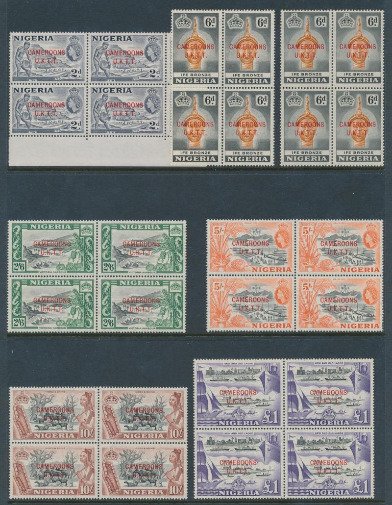 including 5/- x3, QEII 1953 Pictorials set x3; also Cameroons Territory 1960 Oveprints to £1 blocks of four **, some 1980s M/Ss, and Biaffra, Cat $1700+.