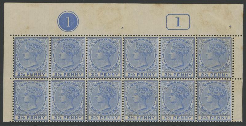 'SPECIMEN' overprint and 2½d blue block of 12 (6x2) from the top of the sheet with Plate Number & Control Number the upper-left unit with Larger Letters of Value, and KEVII range including Crown CA Wmk 5/ & 10/- plus 10/- 'SPECIMEN' overprint and MCA