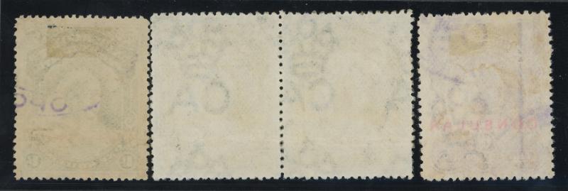 overprints in red on ½d green, 6d brown, 1/- black pair, 2/6d bistre & 10/- violet, each with partial British Consulate cancels, the ½d with a couple of aged perf tips otherwise very fine, Barefoot (2012) Cat £420.
