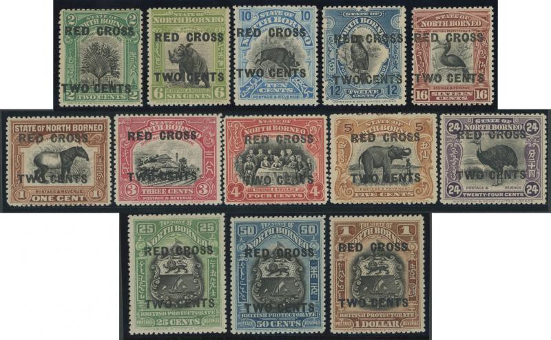 purple * (both with gum tropicalisation), 1901-05 Protectorate overprints 16c * & used and $1 Red Overprint used, 1904-05 '4/cents' surcharges set * plus on $5 (both) & $10 used, 1909-23 Pictorials set (ex 10c) & Surcharges *, 1916 Red Cross