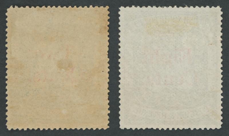 red just a little aged, the other with non-remainder bars cancel in black, Cat £250. (2) (Image1) (Image2)