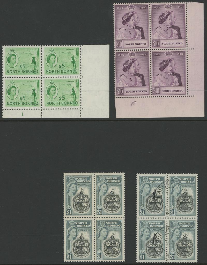 Overprints set */** & used, 1947 Crown Colony Overprints set **, 1948 Silver Wedding $10 Plate Number block of 4 **, 1950 KGVI Pictorials set used, 1954-59 QEII Pictorials set ** plus 50c rose & $2 grey-green, 1961 QEII Pictorials set **& used, etc,
