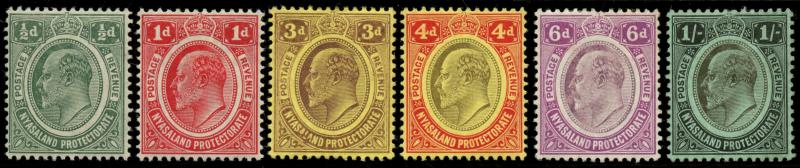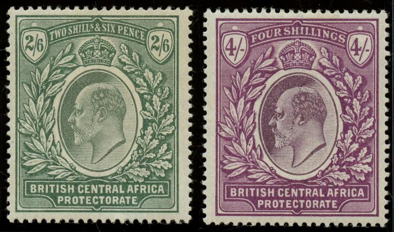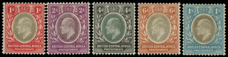 BRITISH CENTRAL AFRICA: 1903-04 KEVII Keyplates Crown CA/CC Wmk 1d to £1 set SG 59-66, above-average centring, the 4/- with a
