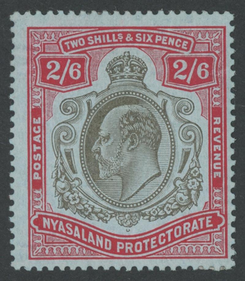 1908-11 KEVII Keyplates 2/6d brownish-black & carmine-red/pale blue SG 78a, characteristic slightly wayward centring, small hinge
