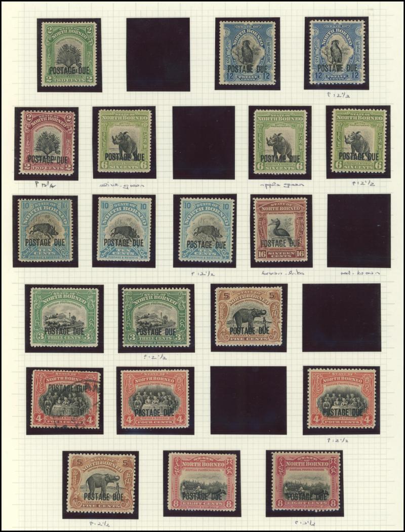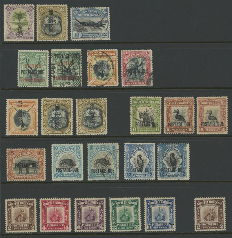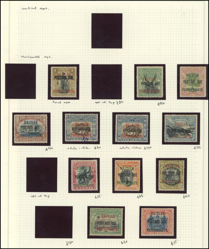 vertically reading upwards) & 24c (Perf 14½-15) * and 2c, 12c & 18c (vertically reading upwards) used, 1897-99 4c, 5c x2, 12c, 18c & 24c *, 1902-12 on Protectorate Overprints 'POSTAGE DUE' at Centre set * (ex 1c; the 2c **) and 'POSTAGE DUE' at Top