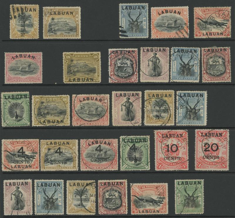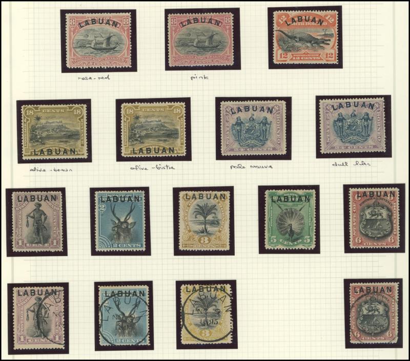 LABUAN: 1890s-1900s collection from 1894 'LABUAN' Superscriptions on North Borneo Pictorials set plus extra shades of 8c, 18c & 24c