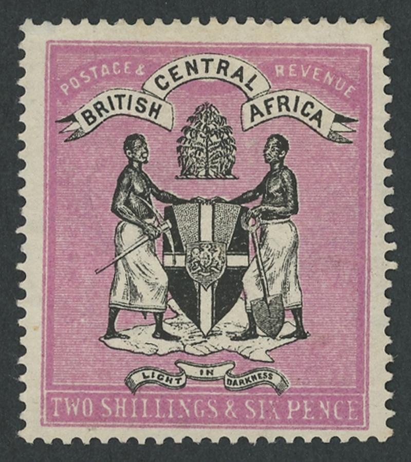 BRITISH CENTRAL AFRICA: 1896 Arms Crown CA Watermark 2/6d black & magenta SG 37, a well-centred example from this notoriously