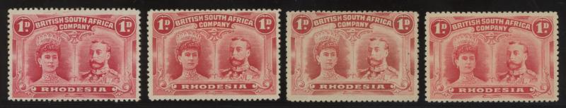 1910-13 KGV Double Heads Perf 14 1d red SG 123-125 group in distinct shades from lake to rose, one with 'OD' Flaw, most are quite