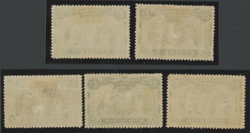 1910-13 KGV Double Heads Perf 14 2d black & grey SG 126-130 group of five distinct shade combinations, most are quite well-centred,