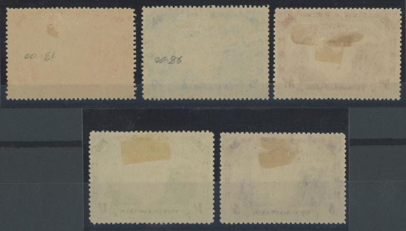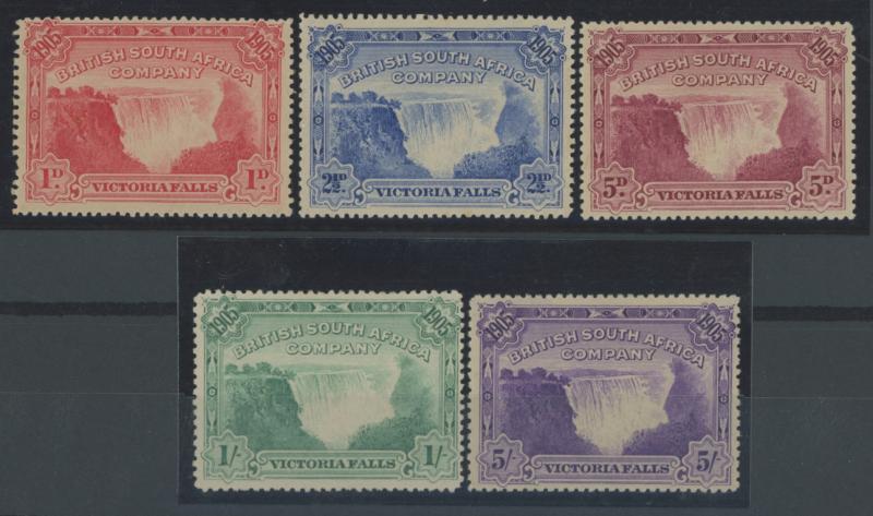 1905 Victoria Falls Bridge 1d to 5/- set SG 94-99, small hinge remainders, Cat £350.