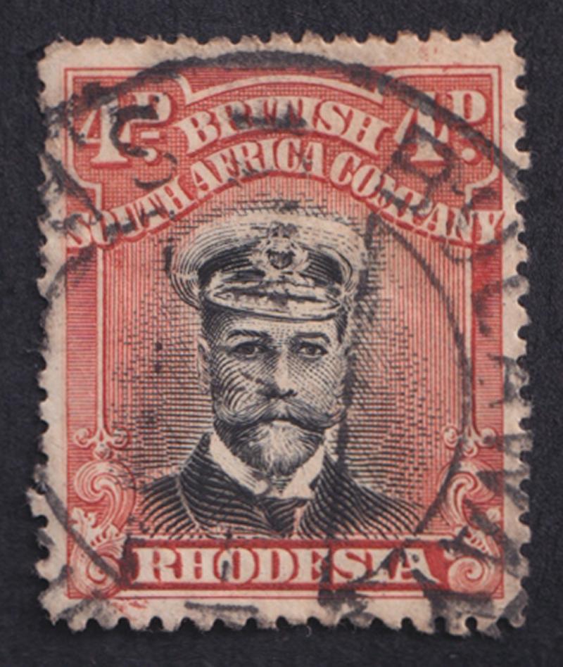1913-19 KGV Admirals Head Die II Perf 15 4d black & red-orange SG 245, very well-centred, large-part Bulawayo cds cancel mostly