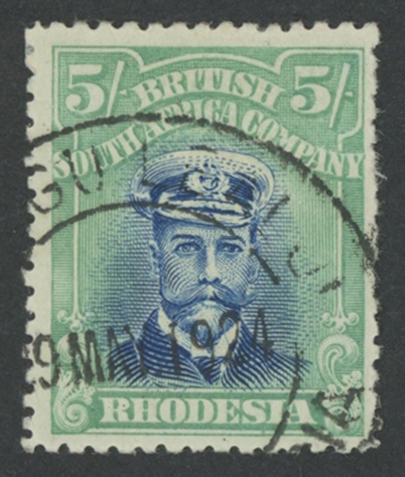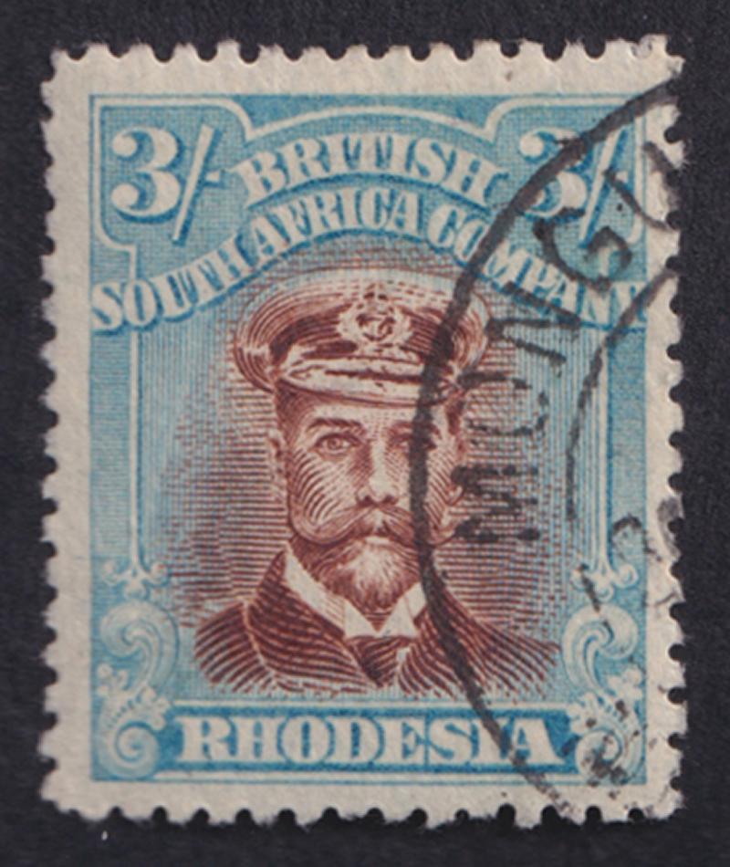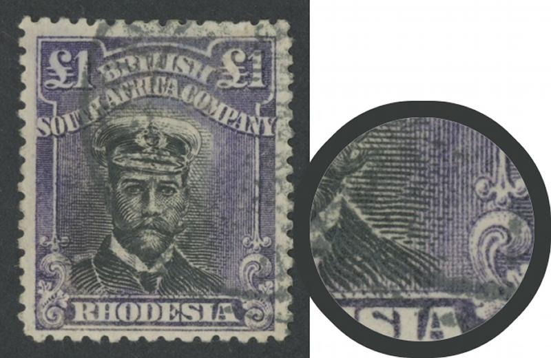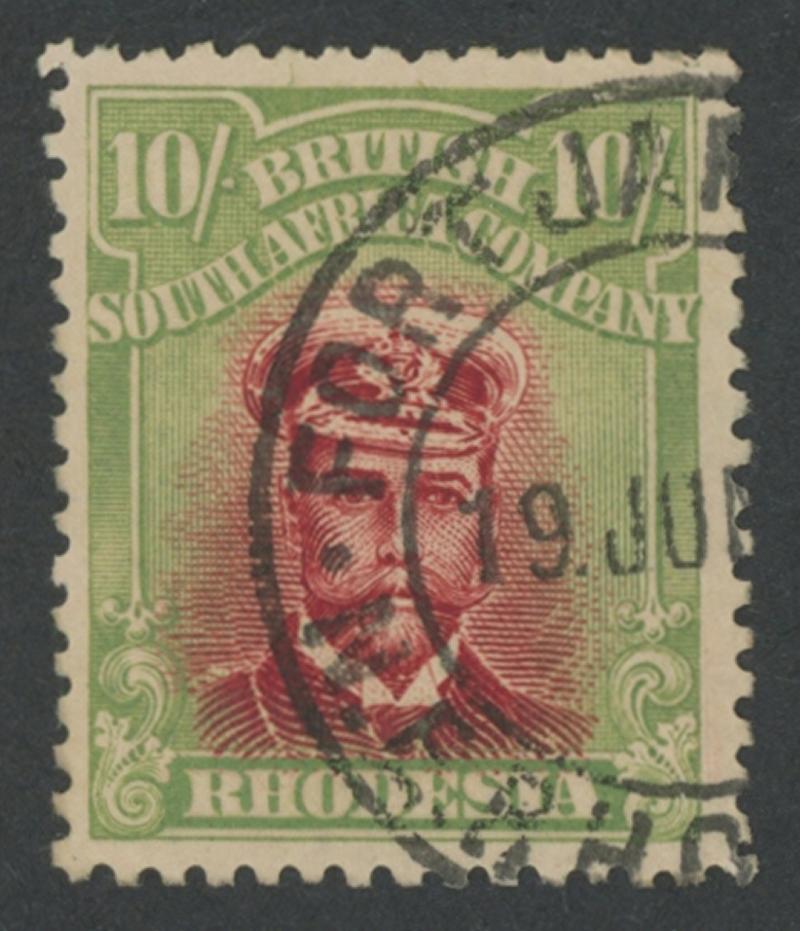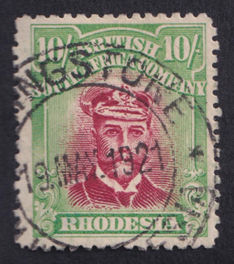 Rhodesia Livingstone 1921 cds cancel, Cat £275. [Note: there was no Head Die IIIB printing of the 10/- value] (Image1) (Image2)