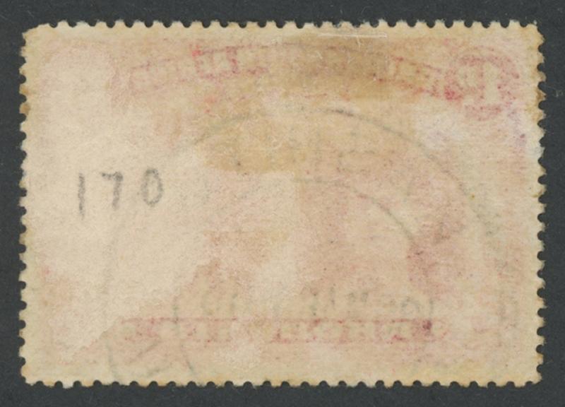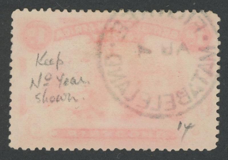 large-part strike on Double Heads 1d rose. PA 15.7.1894; PO 11.8.1903. Handbook #F8 Extremely Rare (only 2 examples recorded; after August 1910 the datestamp was 'frozen' with an inverted '31' for the day & 'SP' for the year). [Bulalima District,