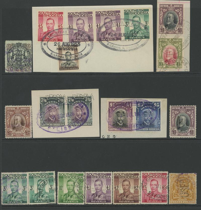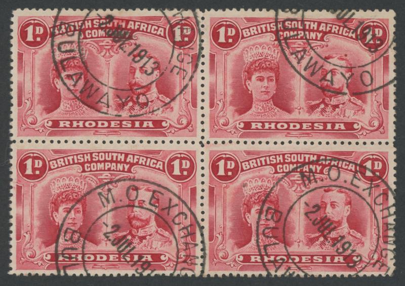 Bulawayo (2): 'M.O. EXCHANGE/-2.JUL.1913/BULAWAYO' [Money Order] double-ring cds (Proud D195), four very fine part-strikes of which