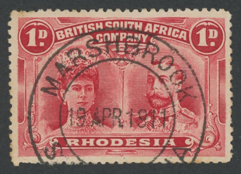 carmine-lake. Handbook Uncommon. Renamed from Charter POA 1.1.1911; closed 5.7.1917. [Postal Agency under Salisbury, Southern Rhodesia. Runner Mail]