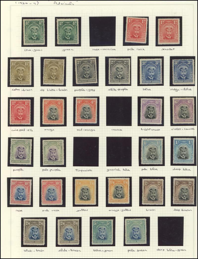 1924-29 KGV Admirals ½d to 5/- set SG 1-14 plus a range of additional annotated shades including 1/6d orange-yellow, 2/- deep brown