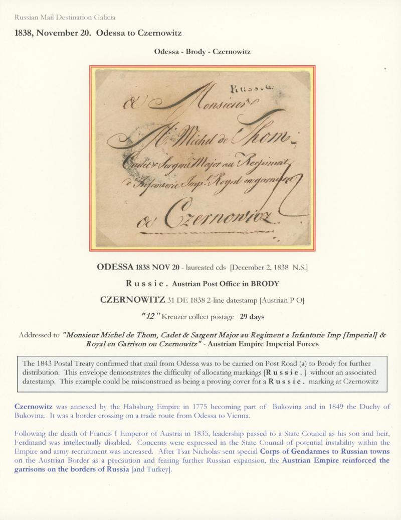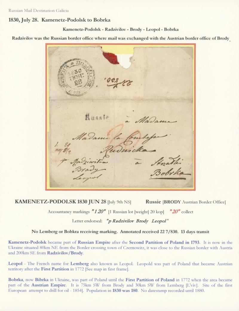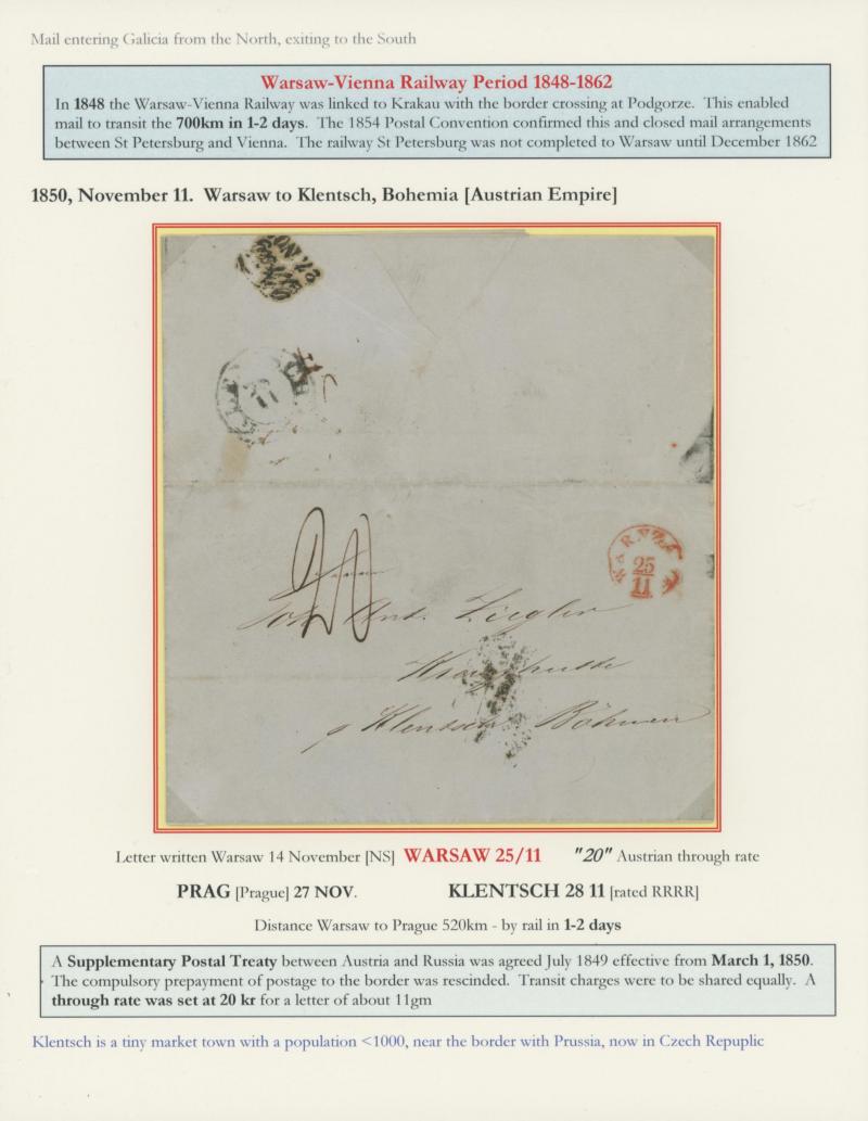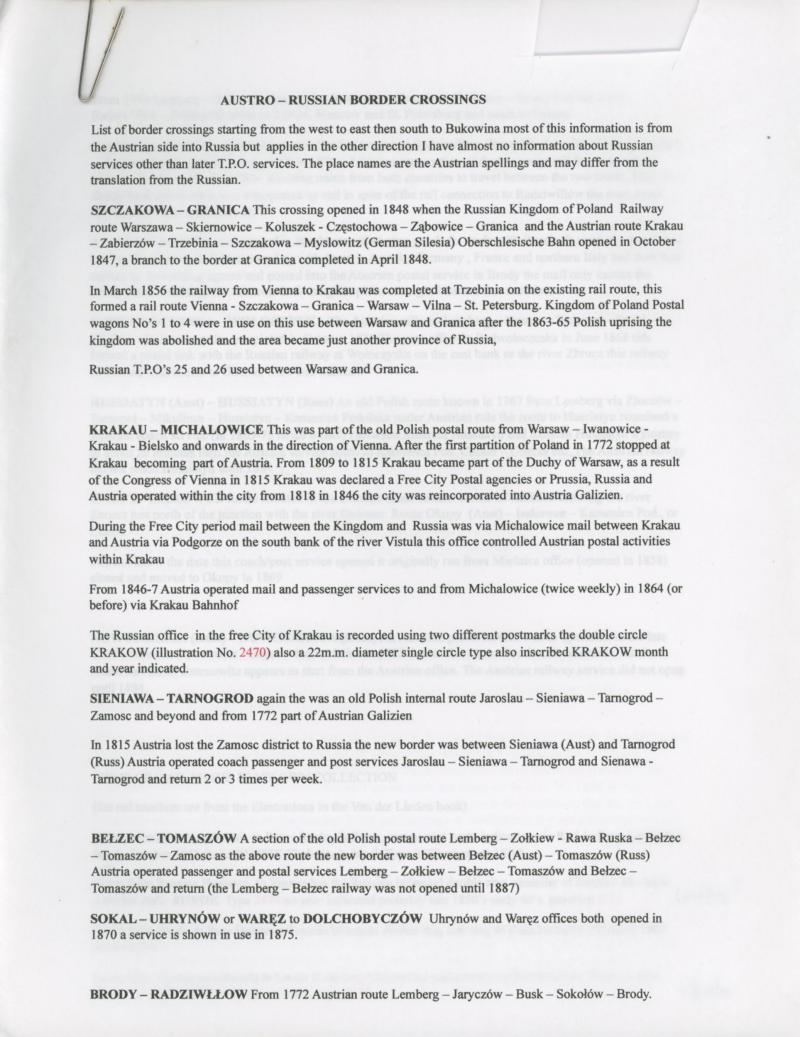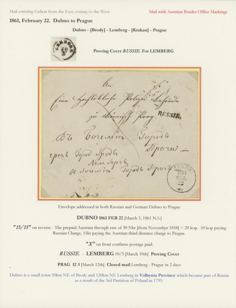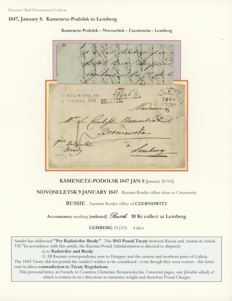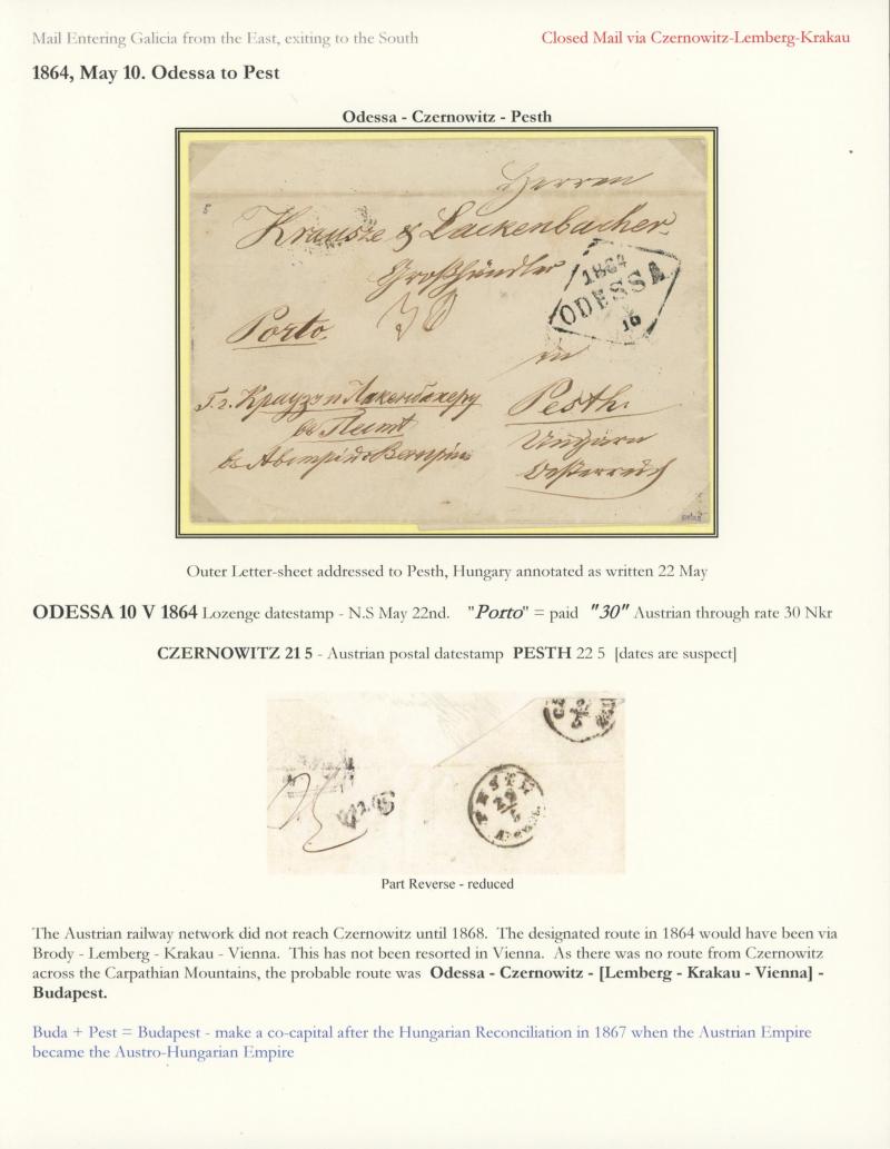 prestamp mail originating in Russia and carried by the four different trans-Galicia Routes to Western or Southern Europe, highlighting the often complex rate structures, the sometimes volatile political situation, the importance of border-exchange