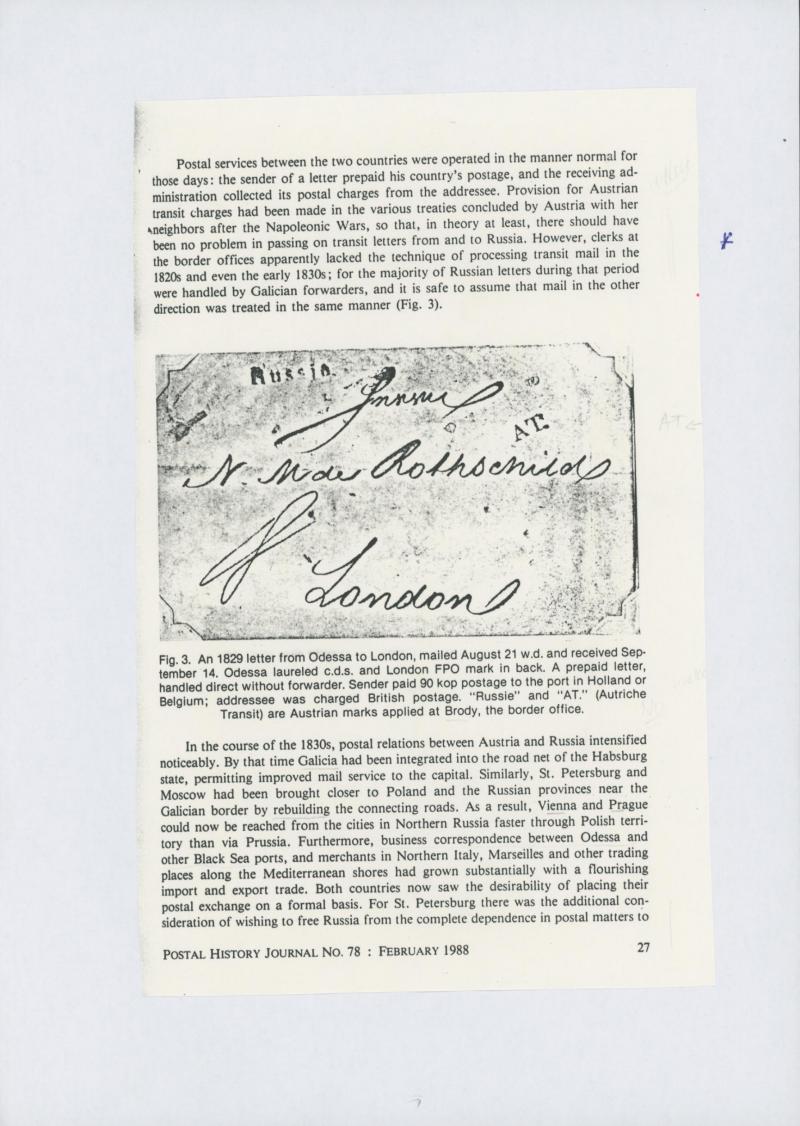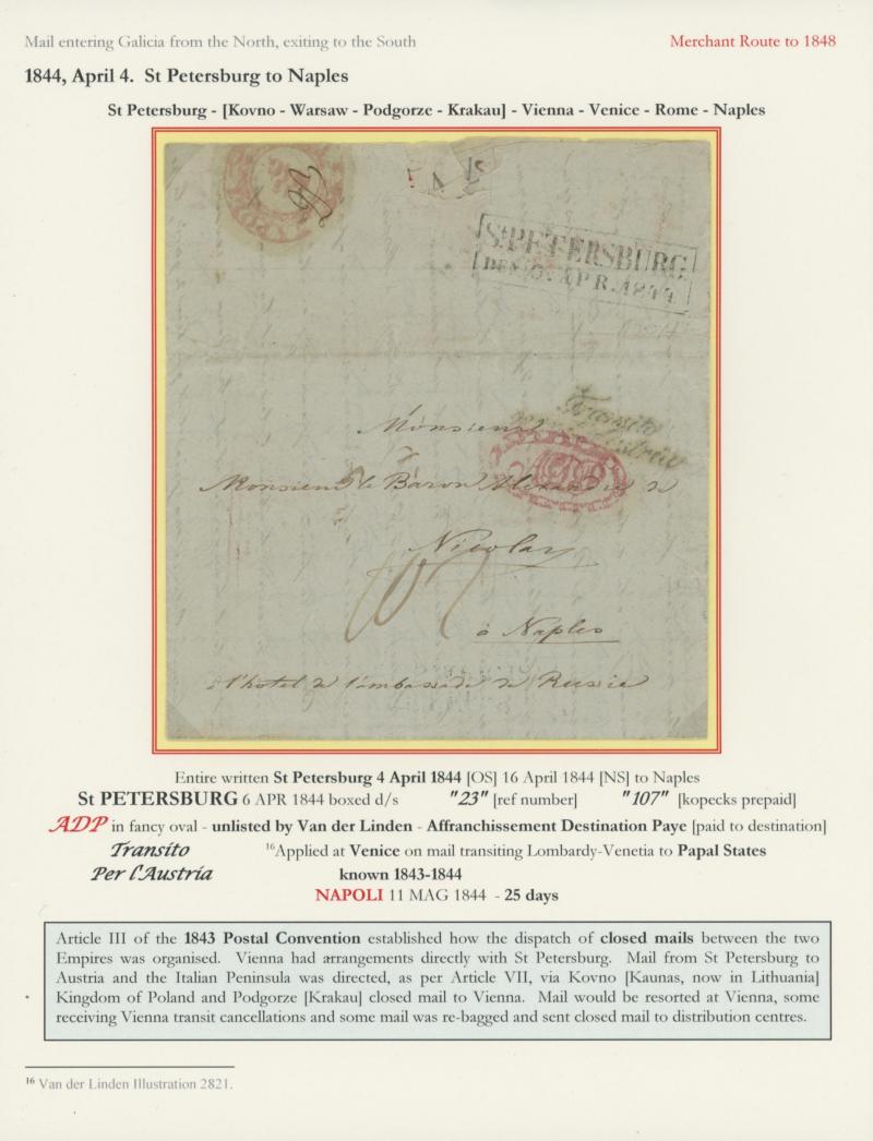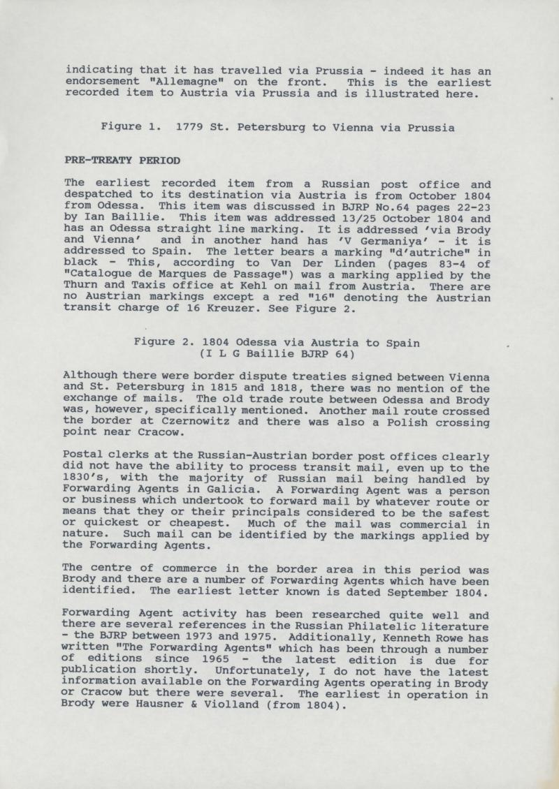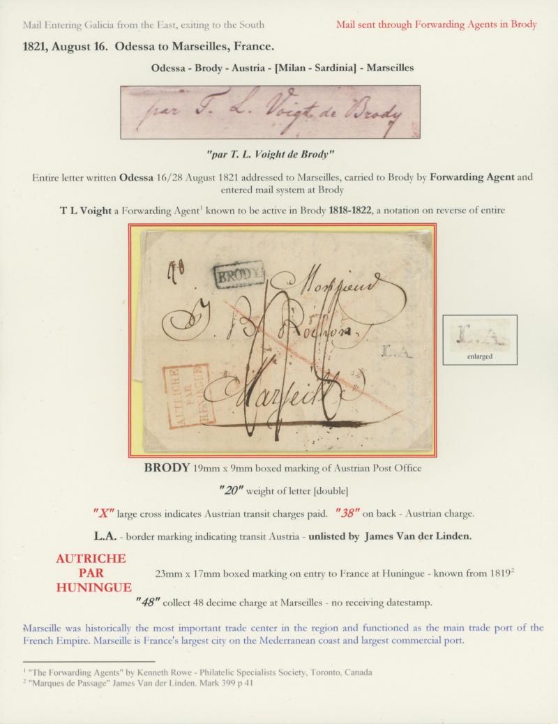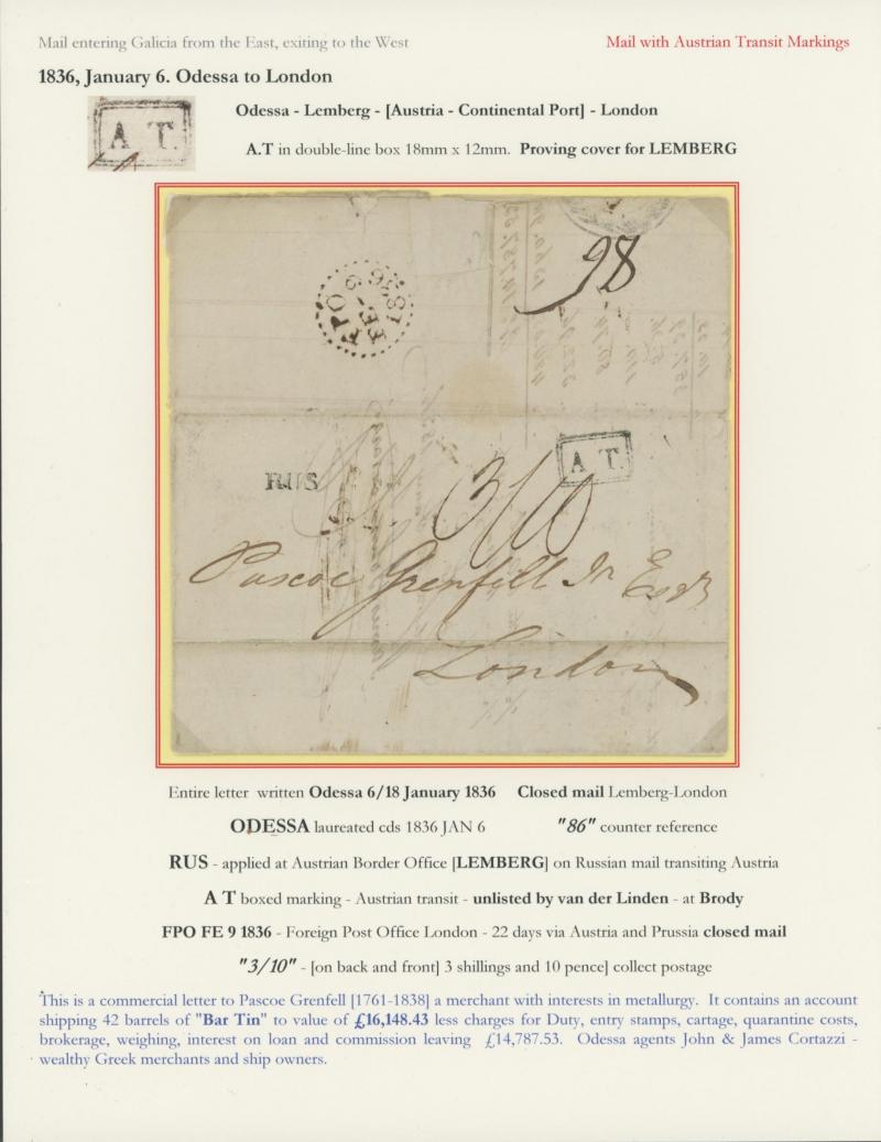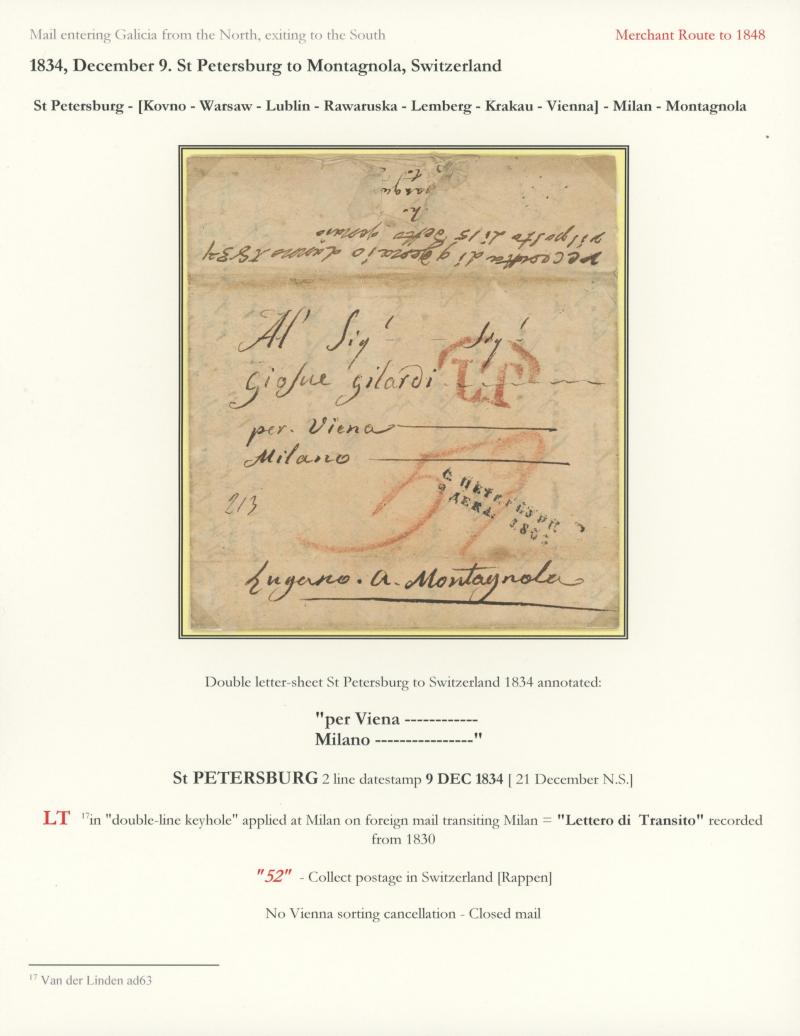 prestamp mail originating in Russia and carried by the four different trans-Galicia Routes to Western or Southern Europe, highlighting the often complex rate structures, the sometimes volatile political situation, the importance of border-exchange