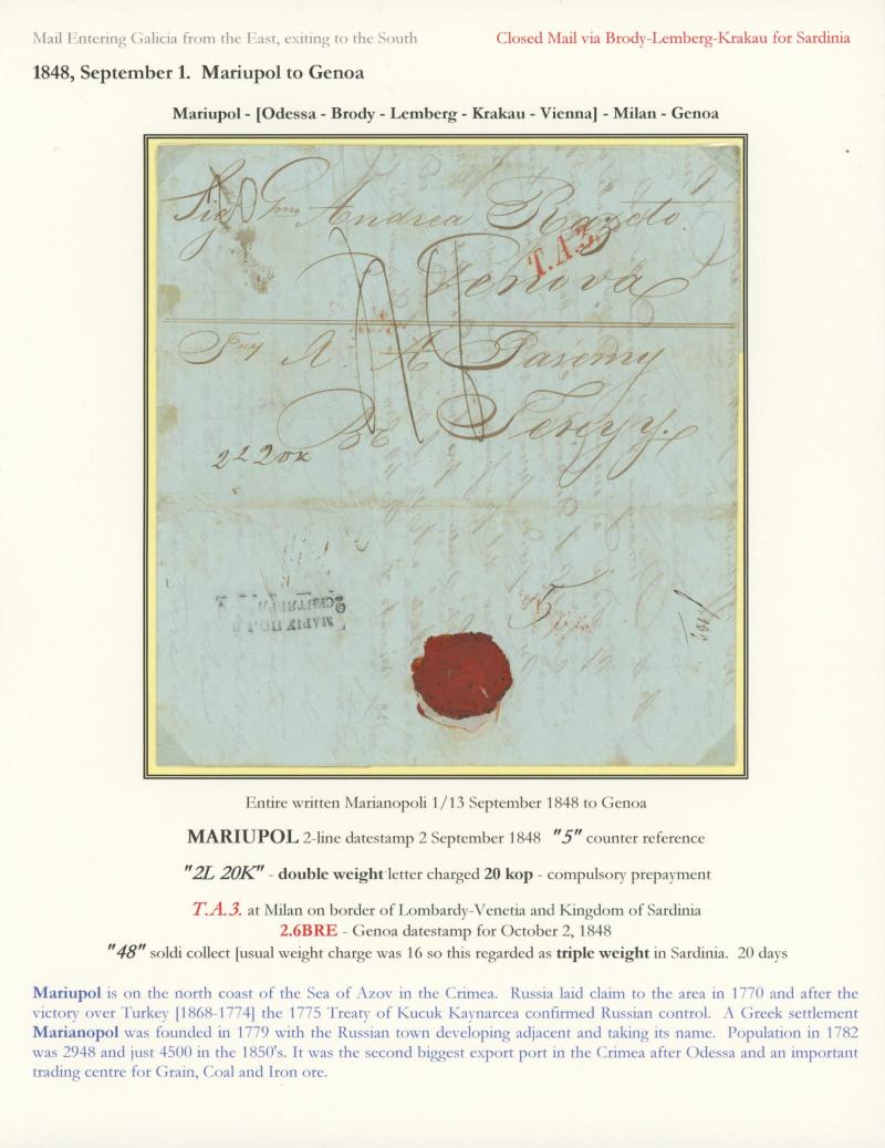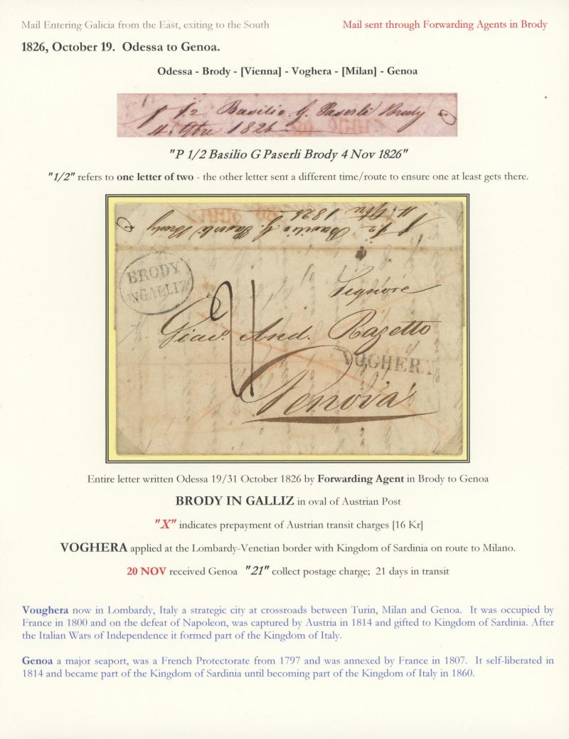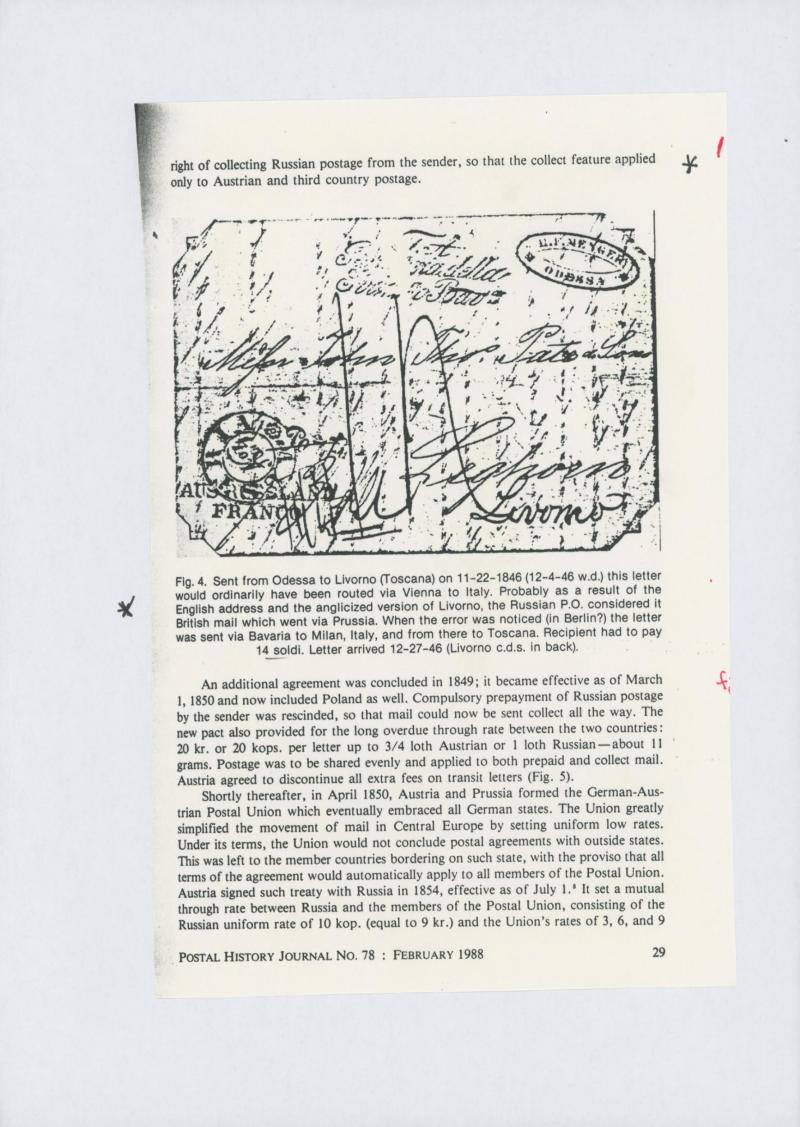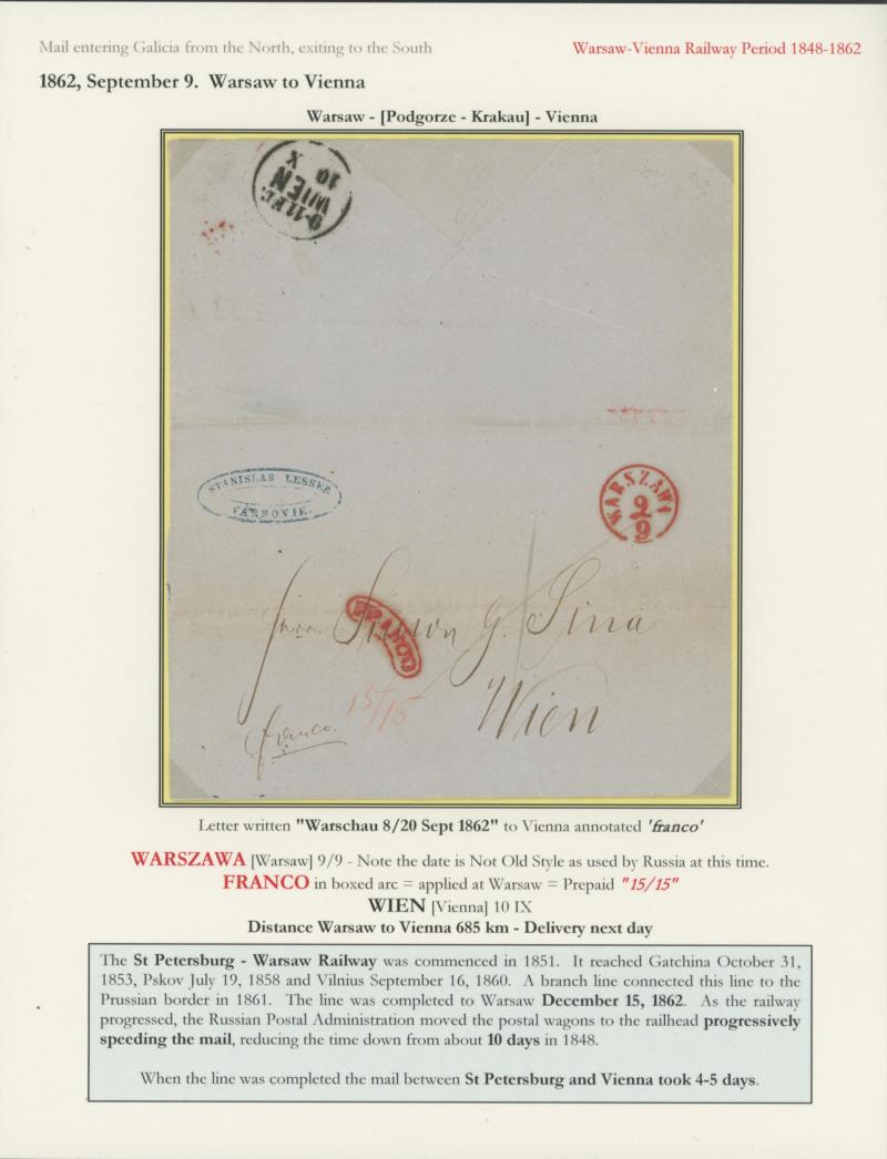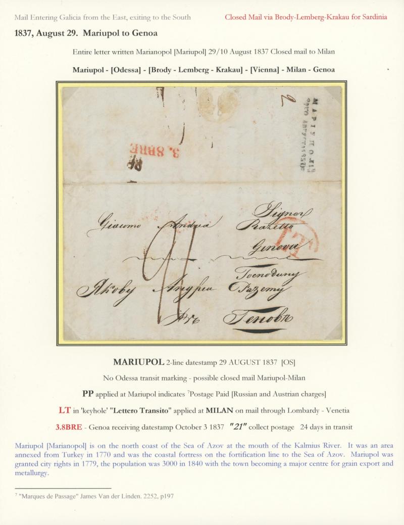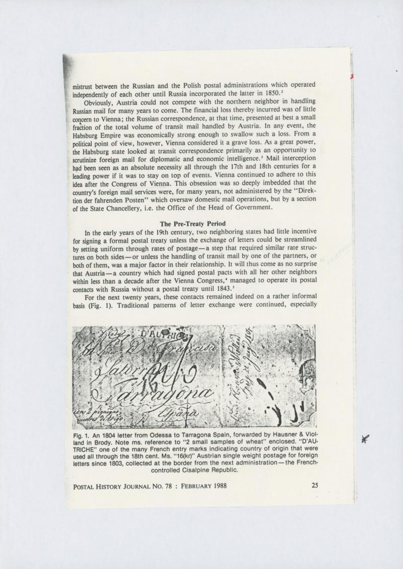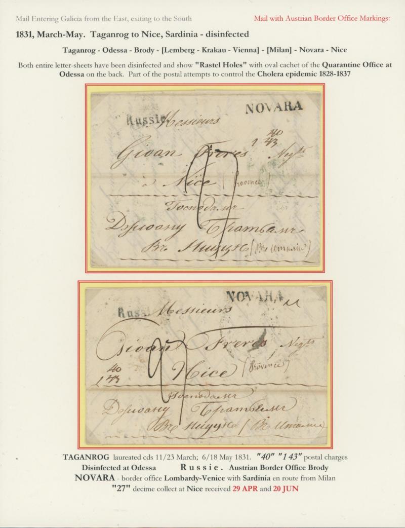 prestamp mail originating in Russia and carried by the four different trans-Galicia Routes to Western or Southern Europe, highlighting the often complex rate structures, the sometimes volatile political situation, the importance of border-exchange