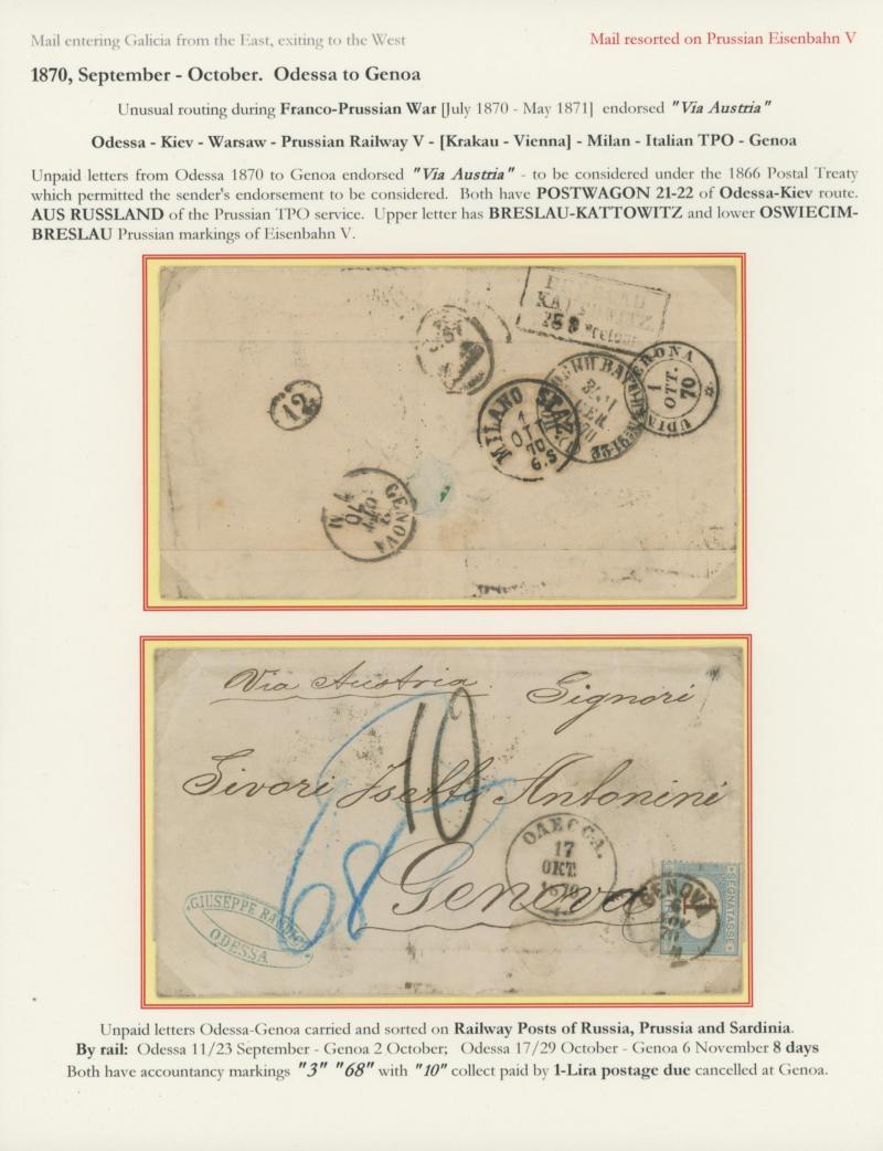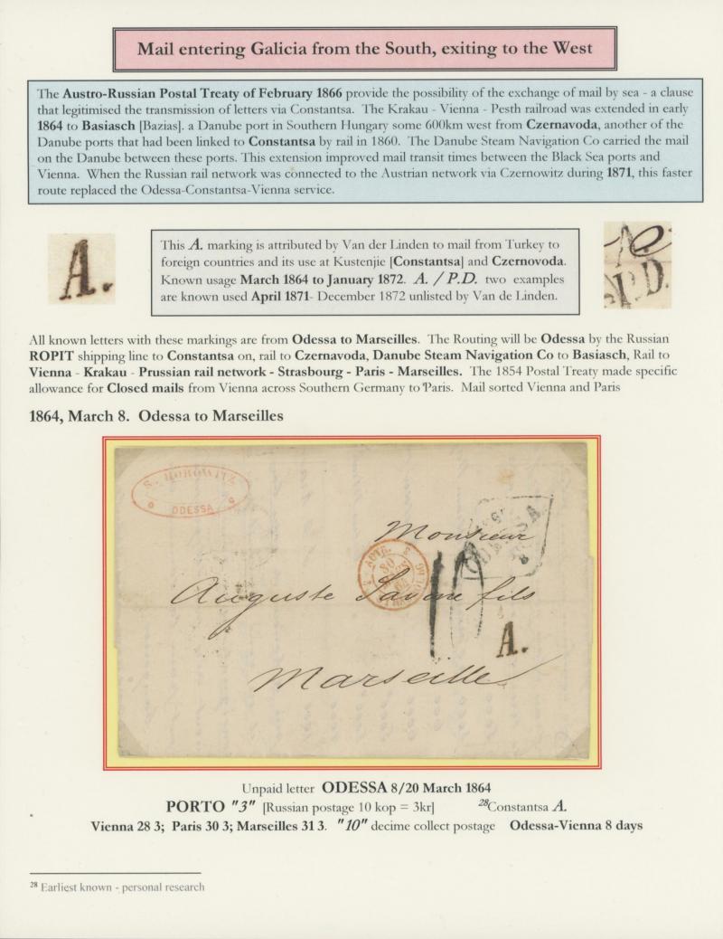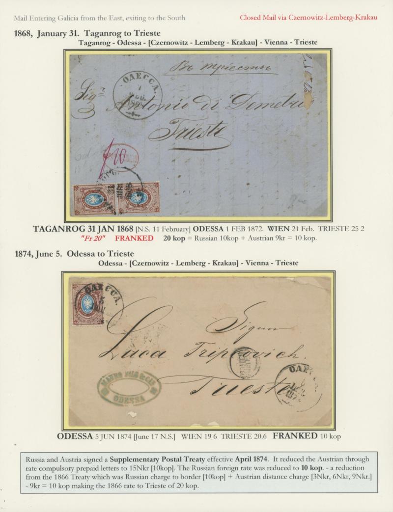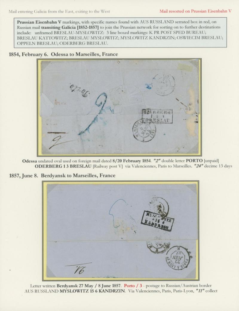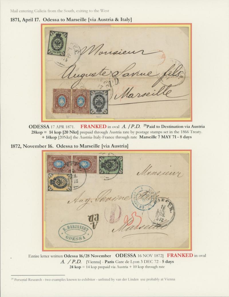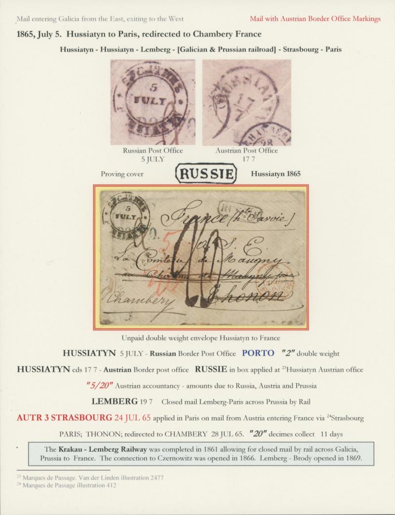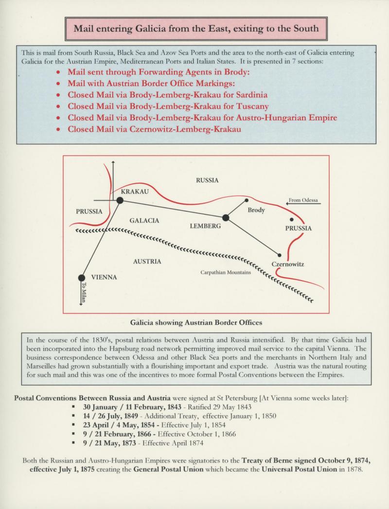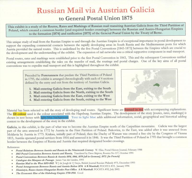 POSTAL HISTORY: 'Russian Mail via Austrian Galicia to General Postal Union 1875' pages from earlier versions of the exhibit still