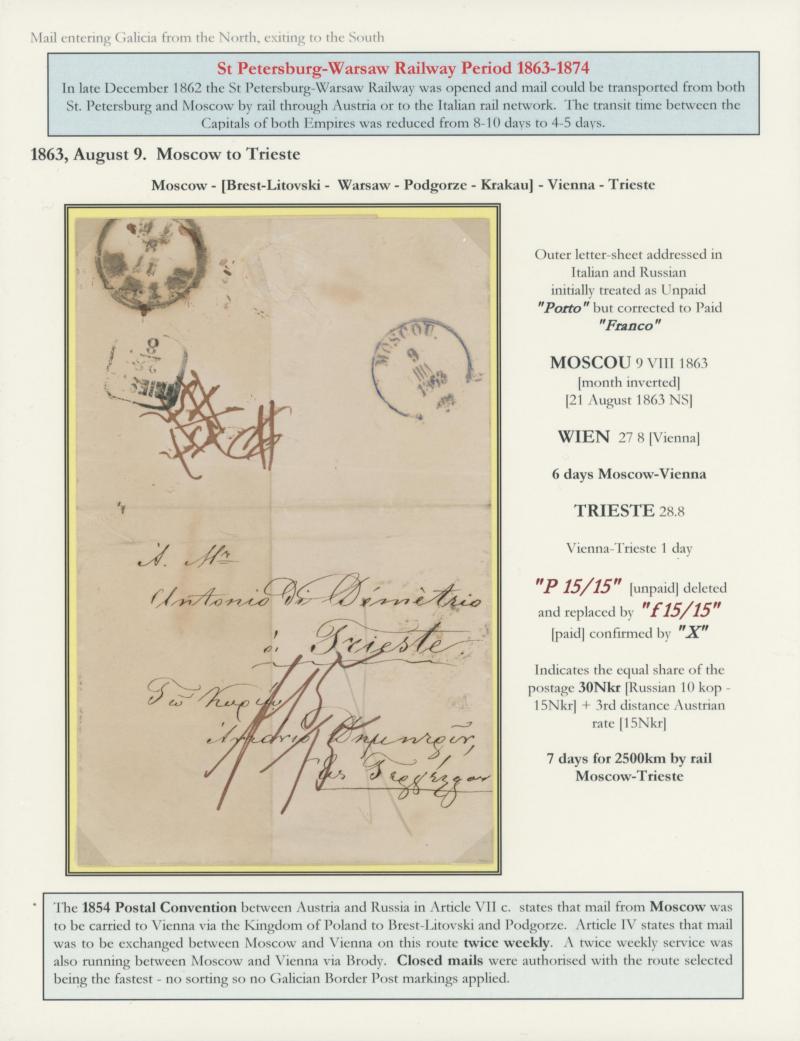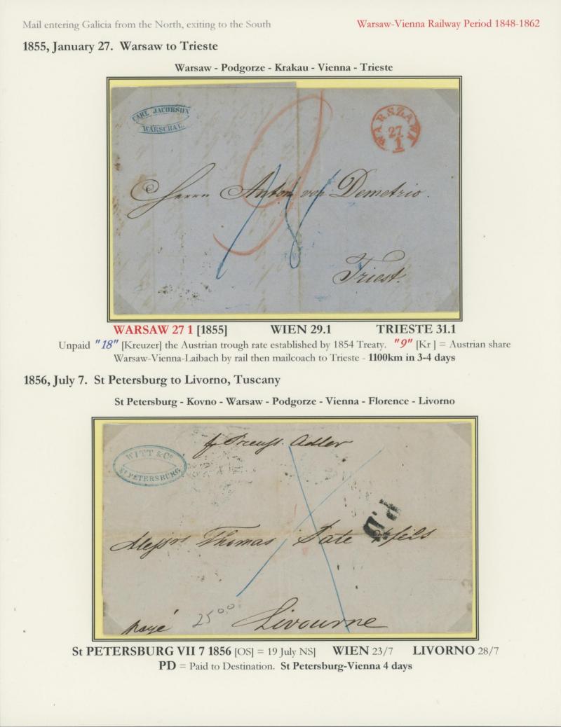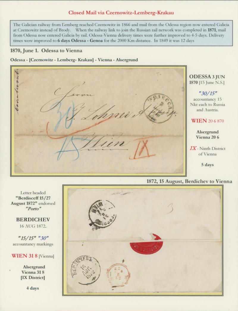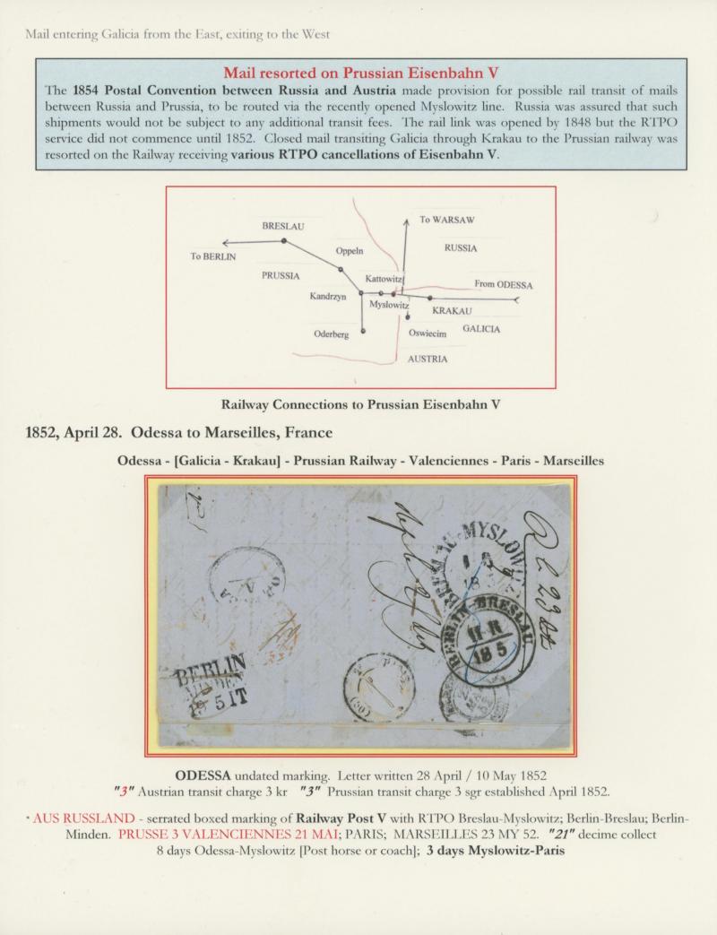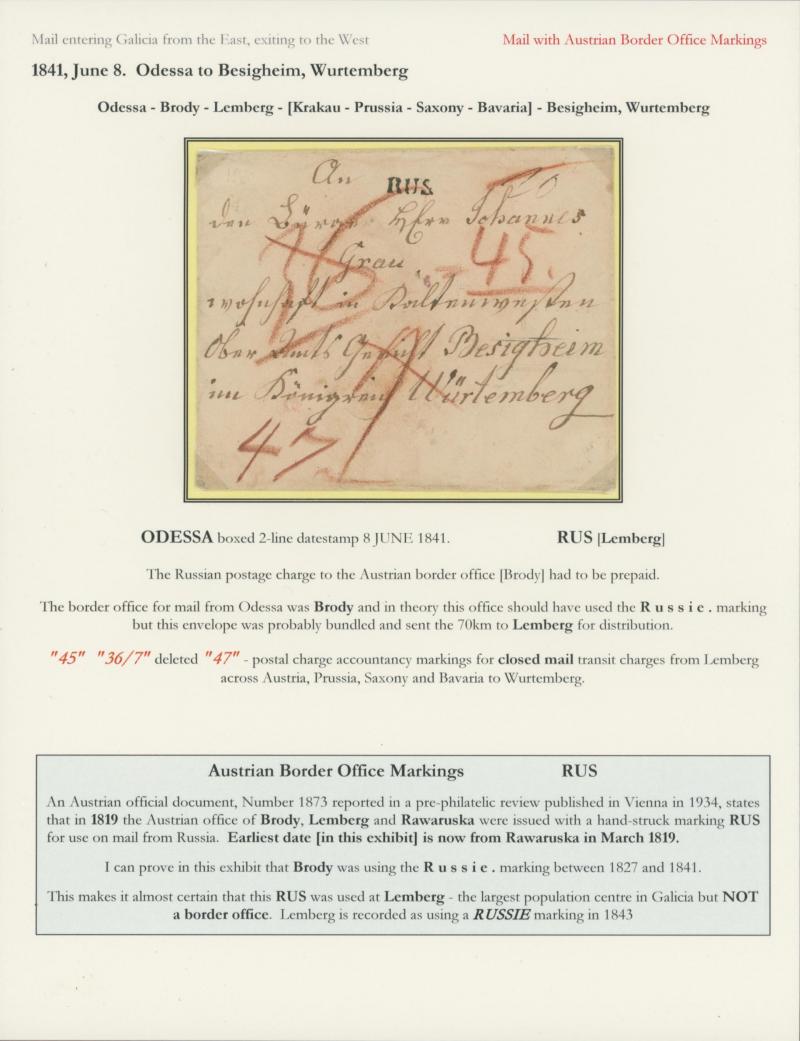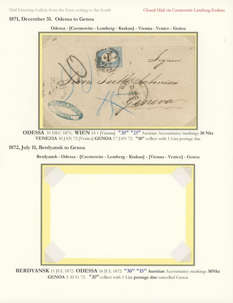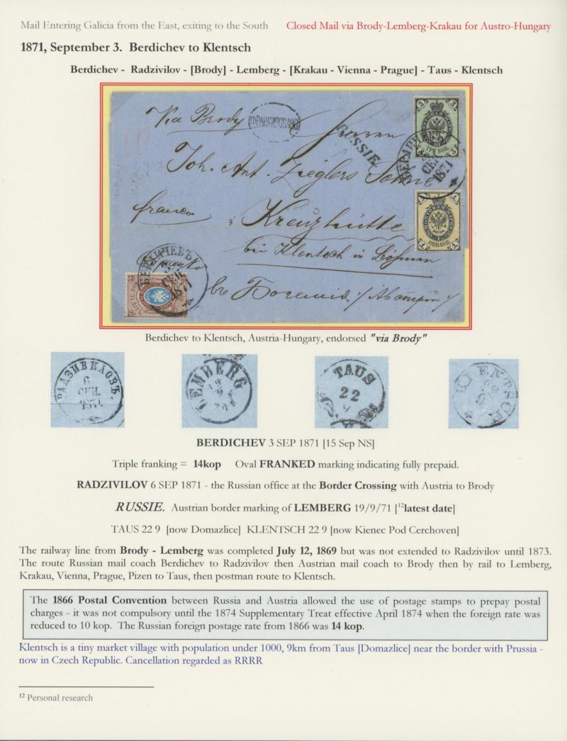 POSTAL HISTORY: 'Russian Mail via Austrian Galicia to General Postal Union 1875' pages from earlier versions of the exhibit still