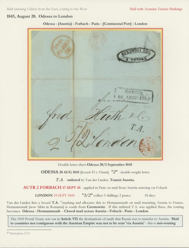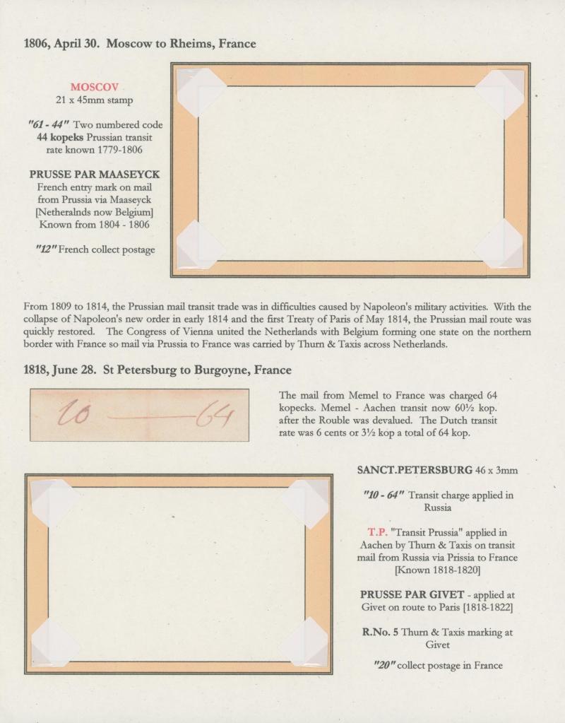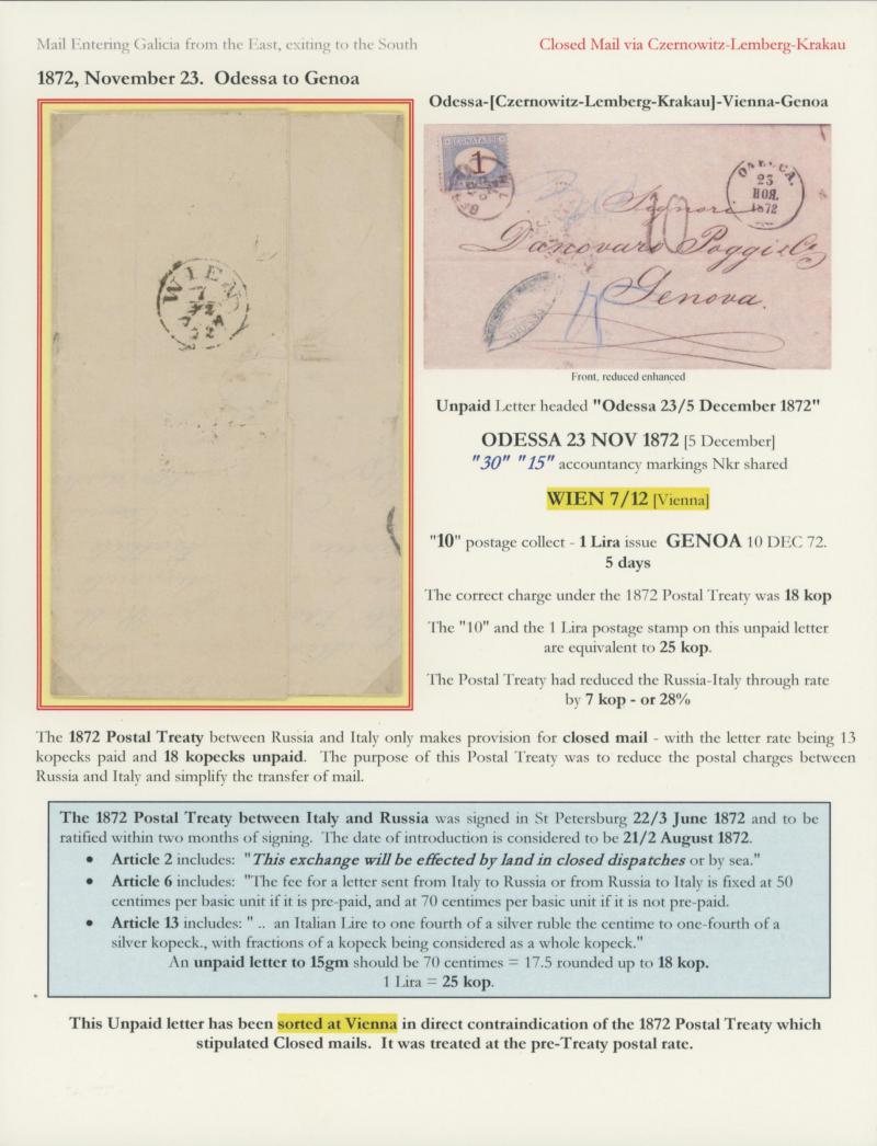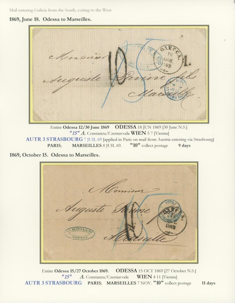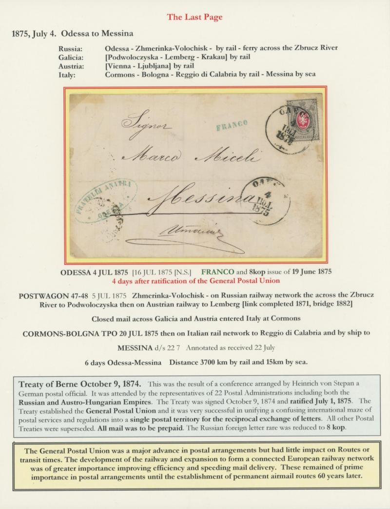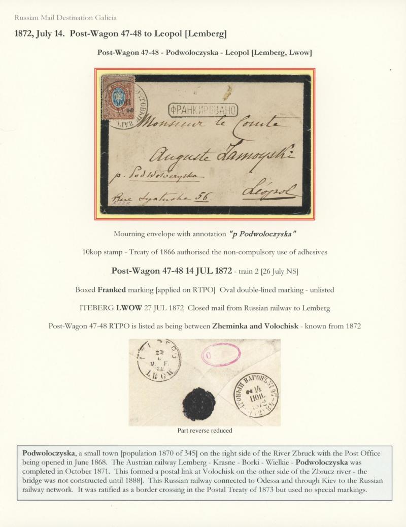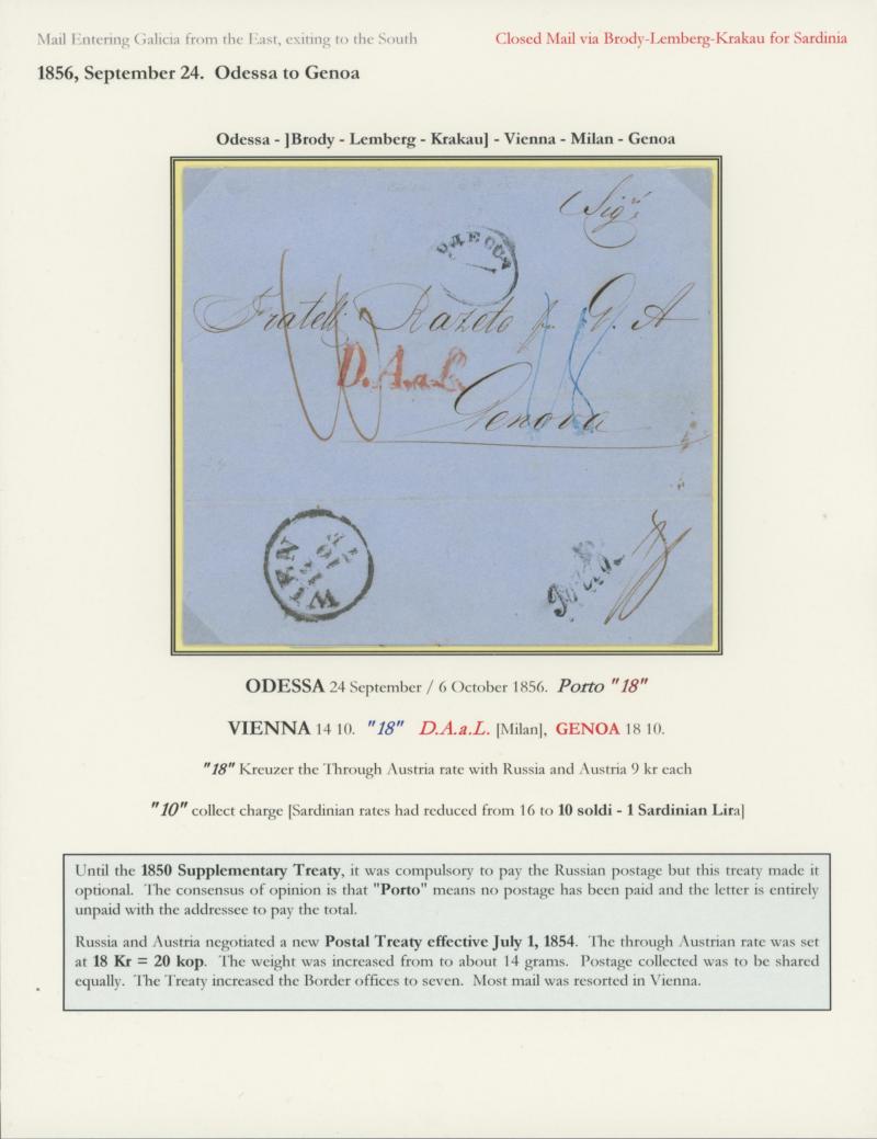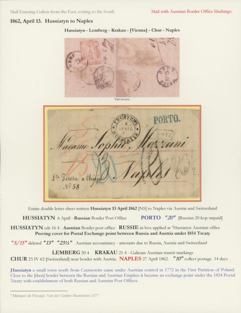 POSTAL HISTORY: 'Russian Mail via Austrian Galicia to General Postal Union 1875' pages from earlier versions of the exhibit still