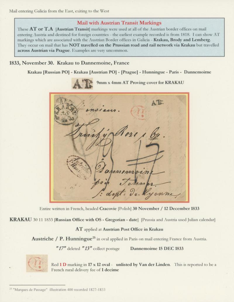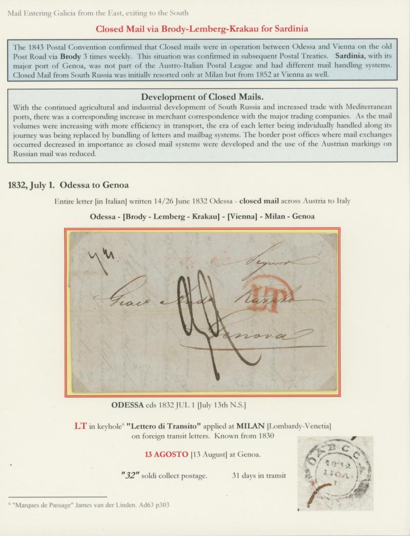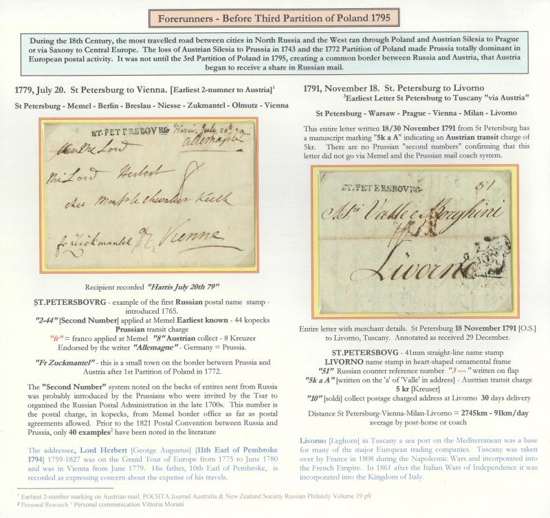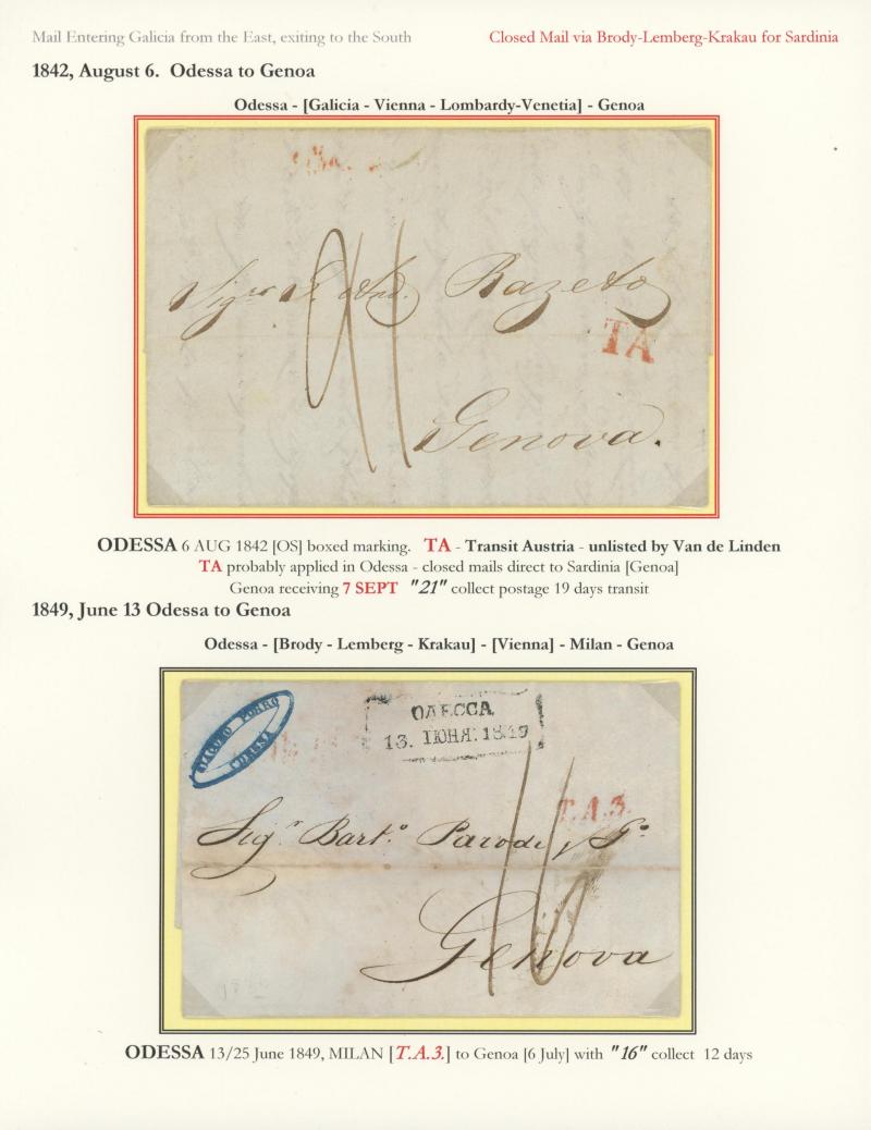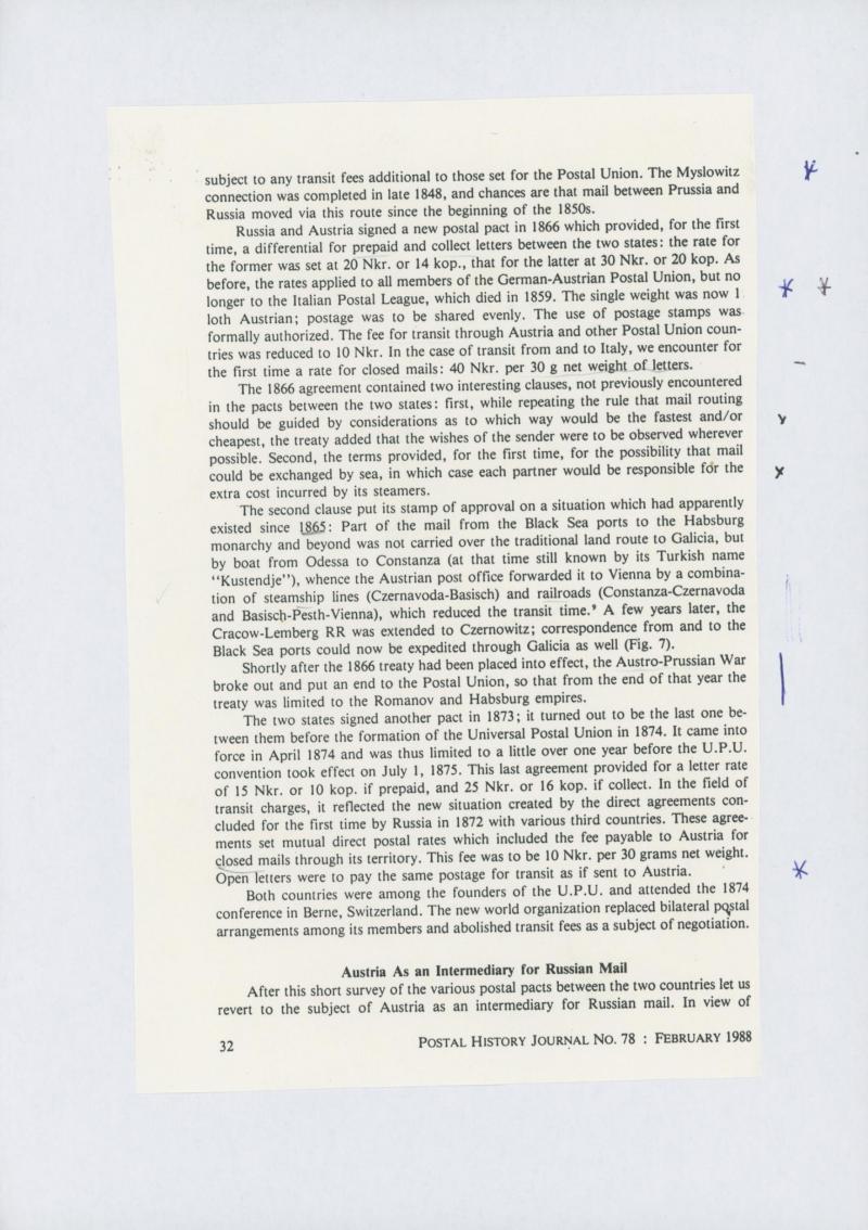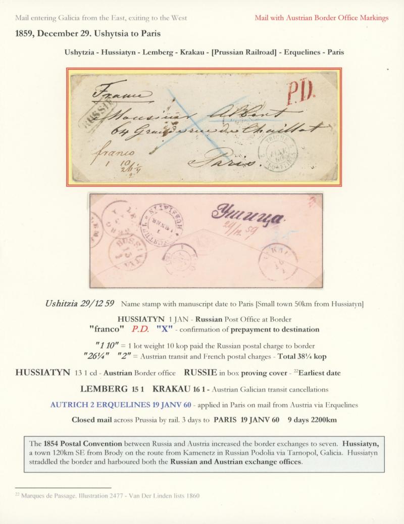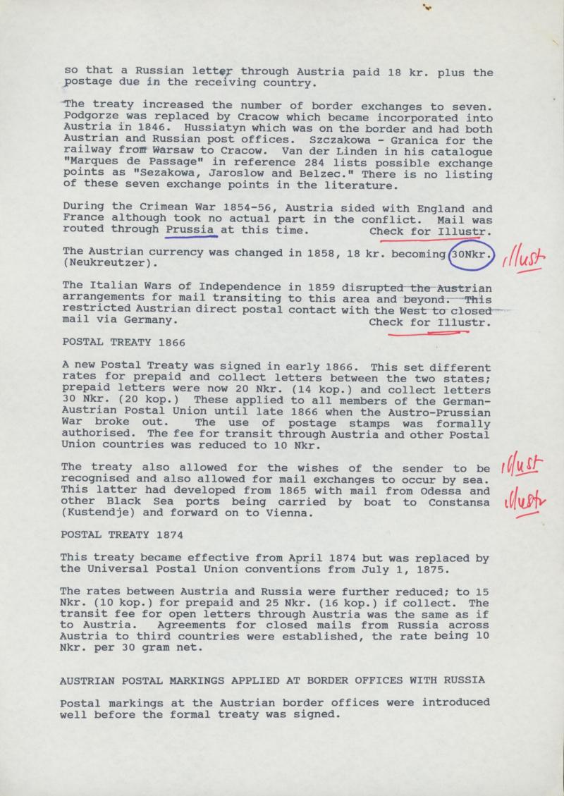 POSTAL HISTORY: 'Russian Mail via Austrian Galicia to General Postal Union 1875' pages from earlier versions of the exhibit still