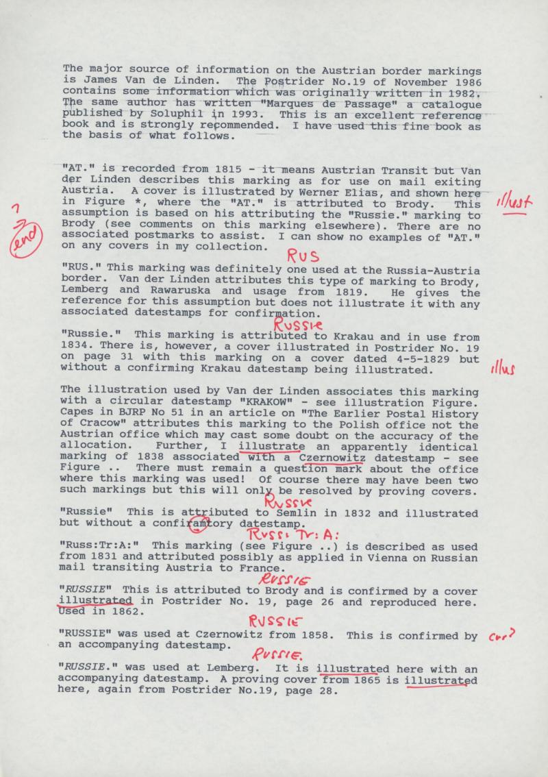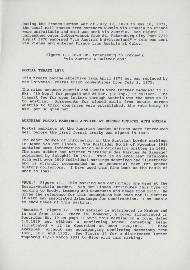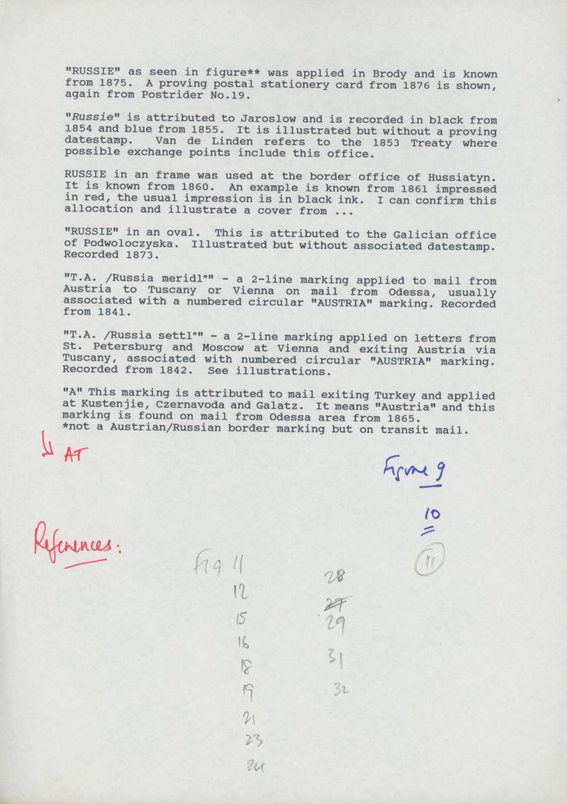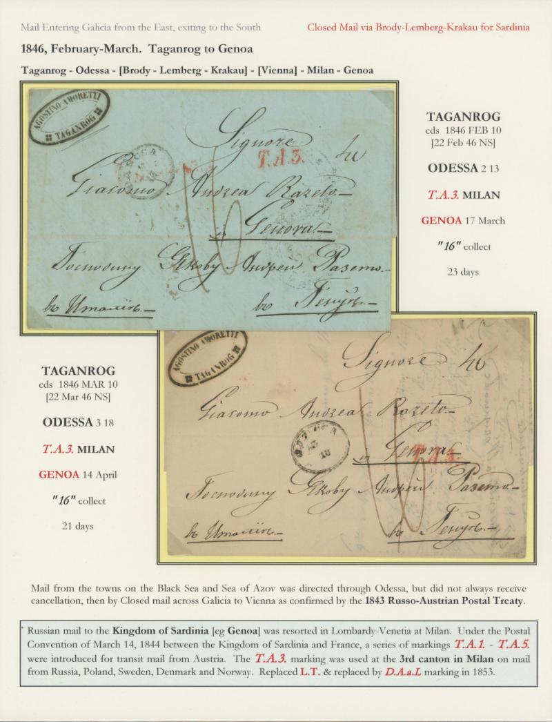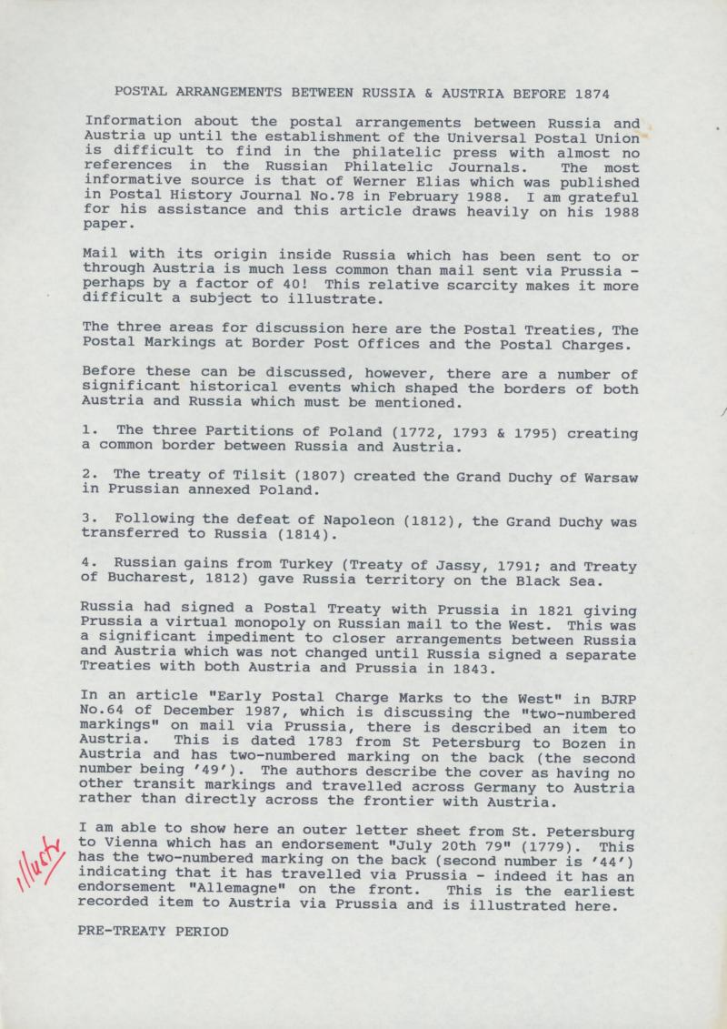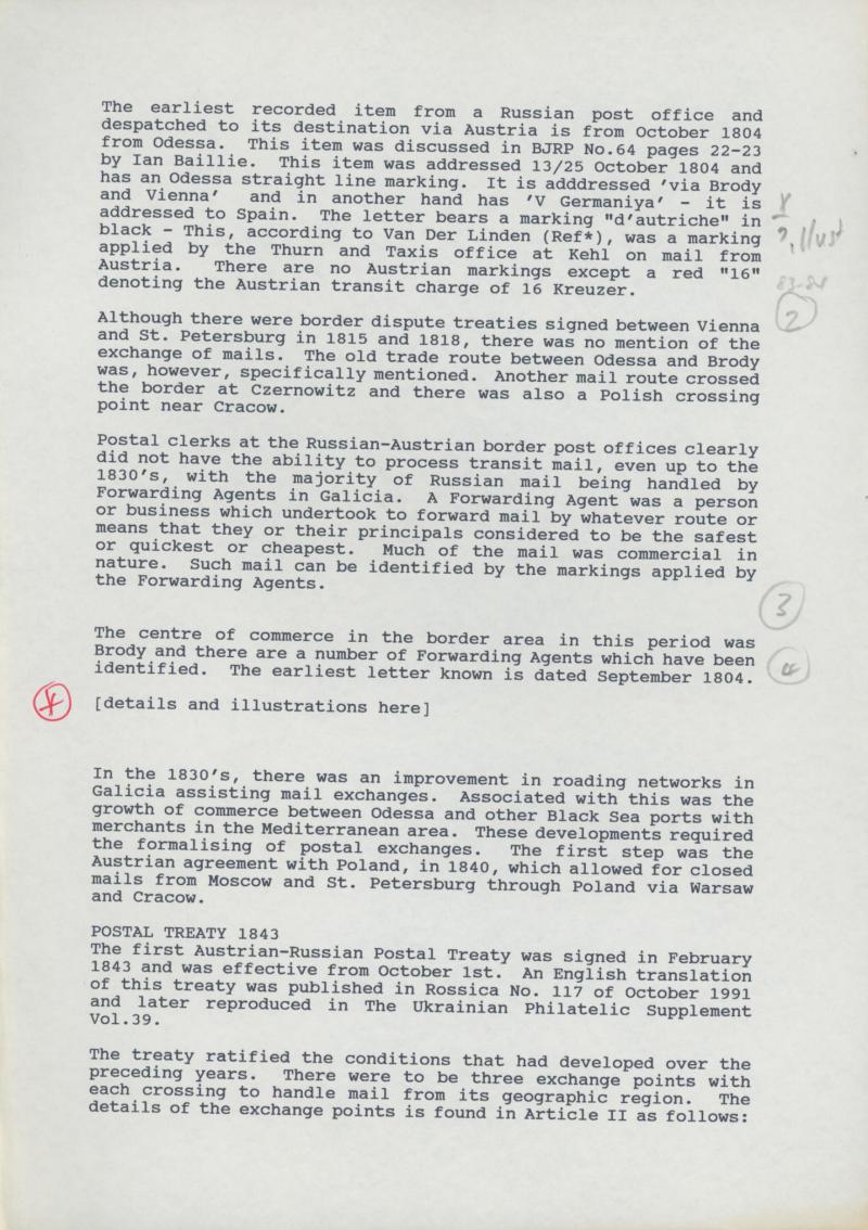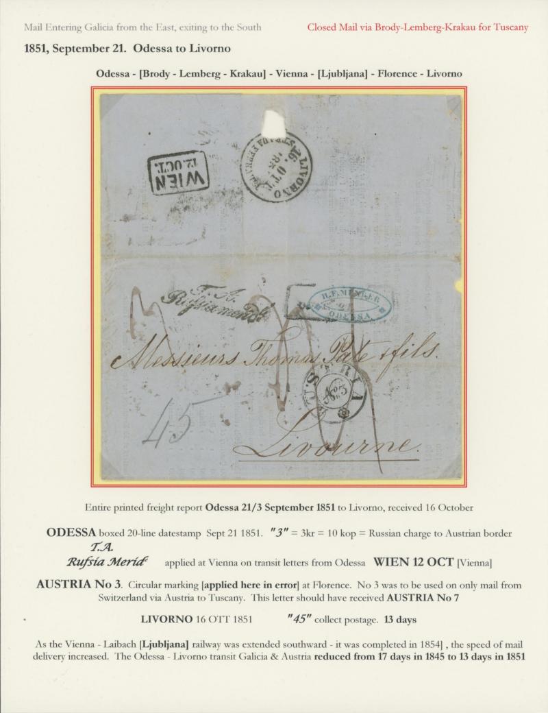 POSTAL HISTORY: 'Russian Mail via Austrian Galicia to General Postal Union 1875' pages from earlier versions of the exhibit still