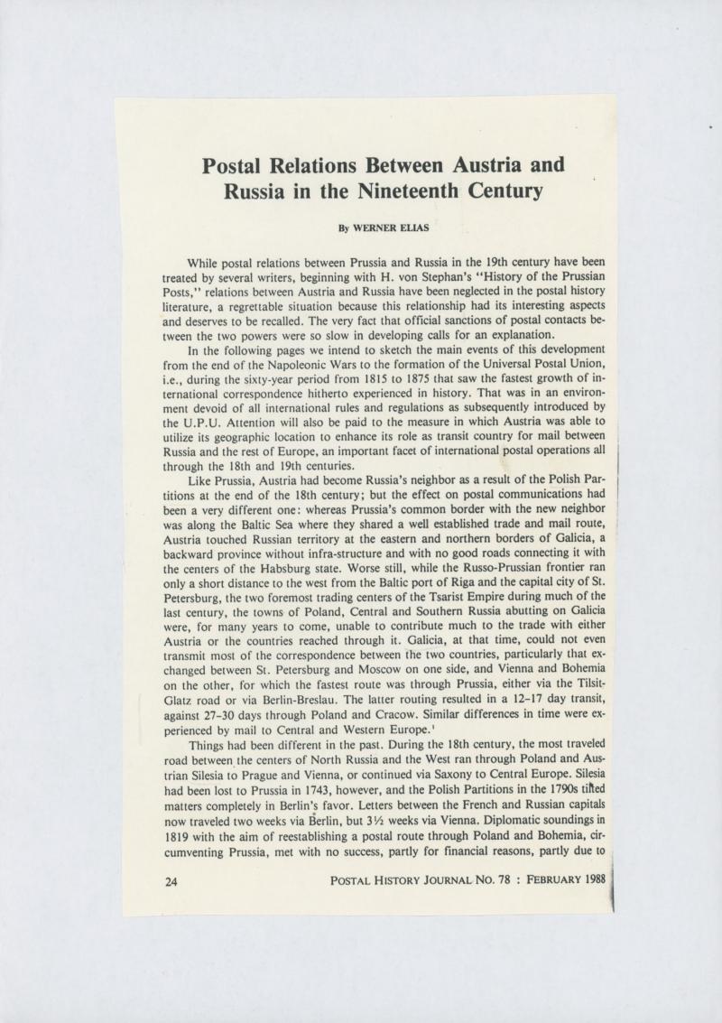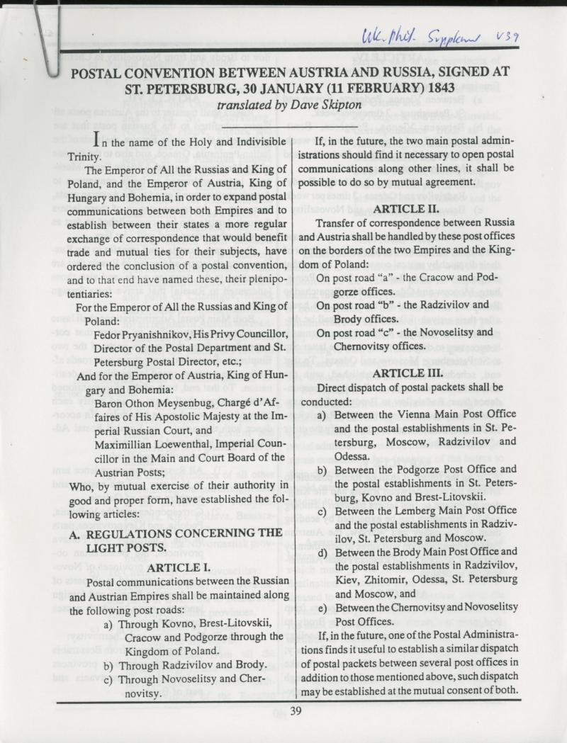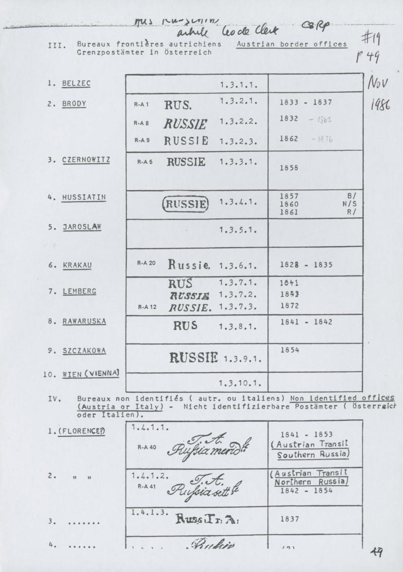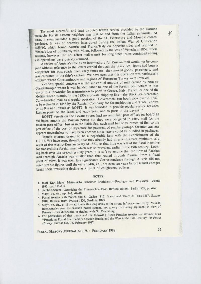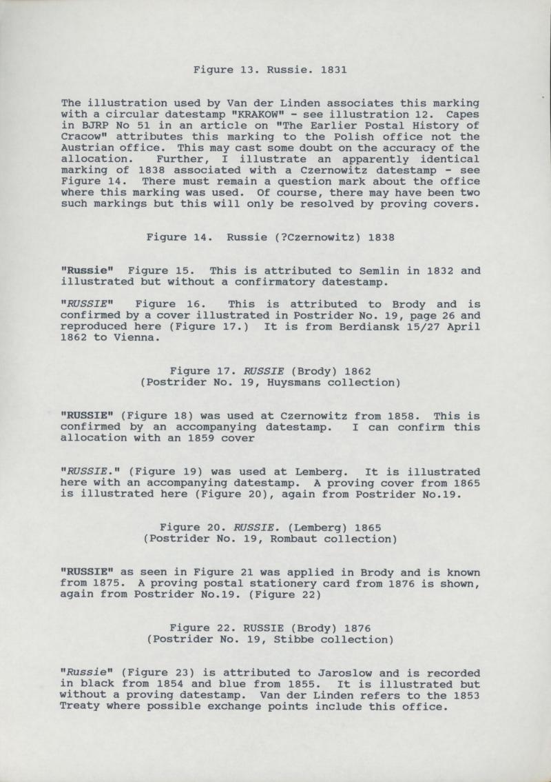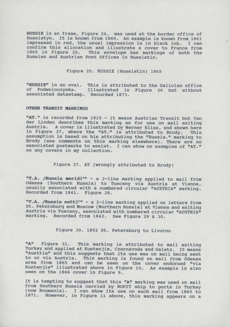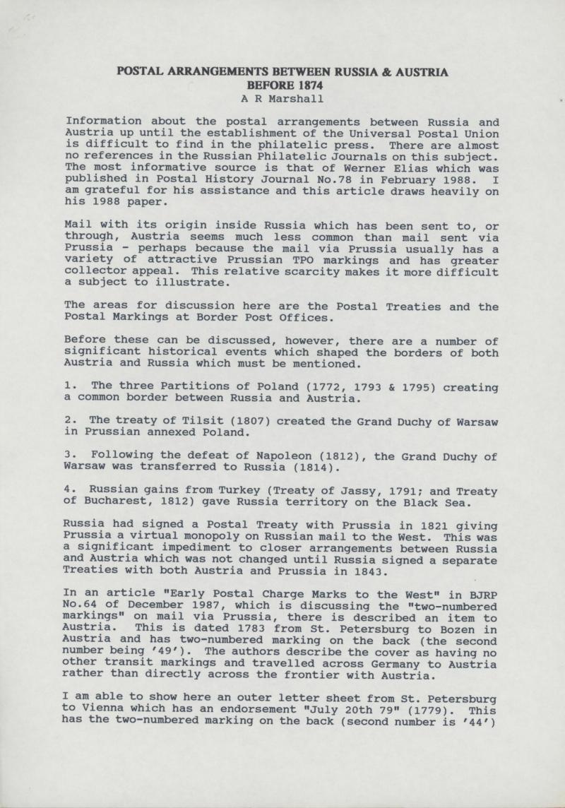 POSTAL HISTORY: 'Russian Mail via Austrian Galicia to General Postal Union 1875' pages from earlier versions of the exhibit still