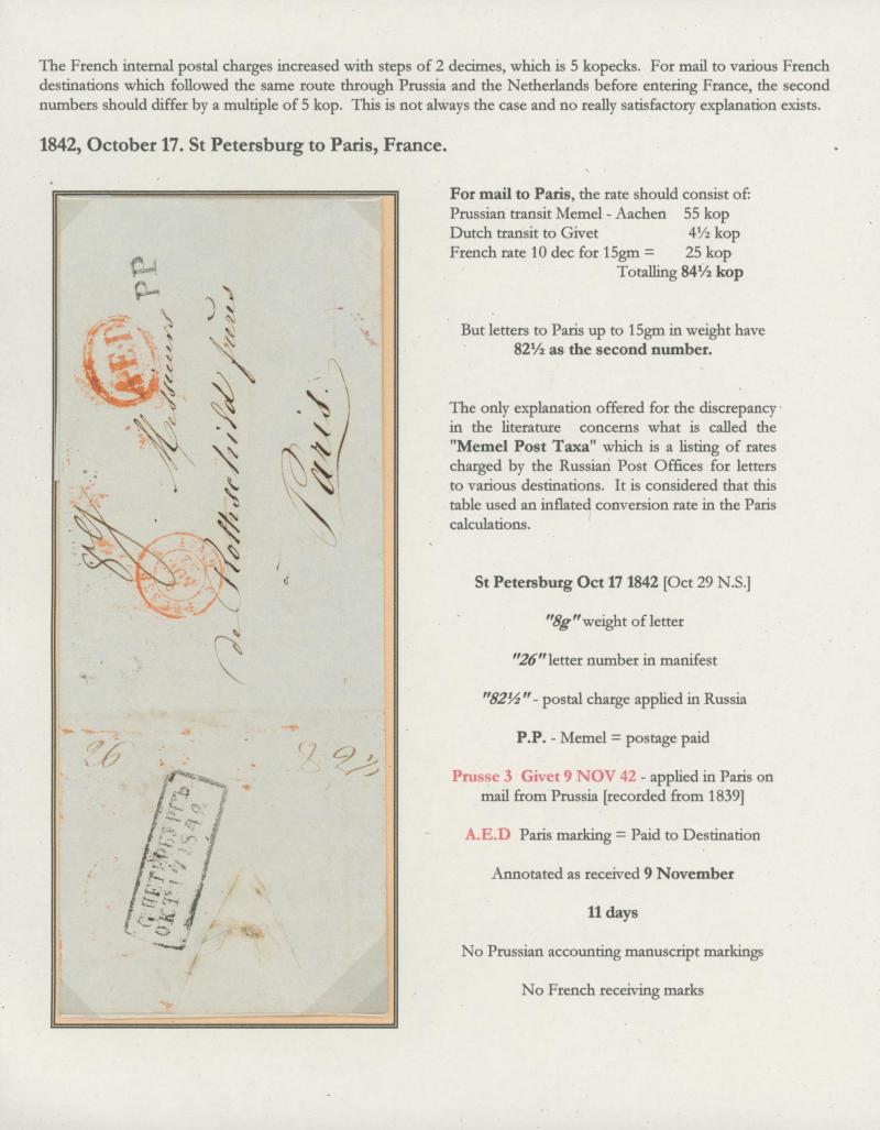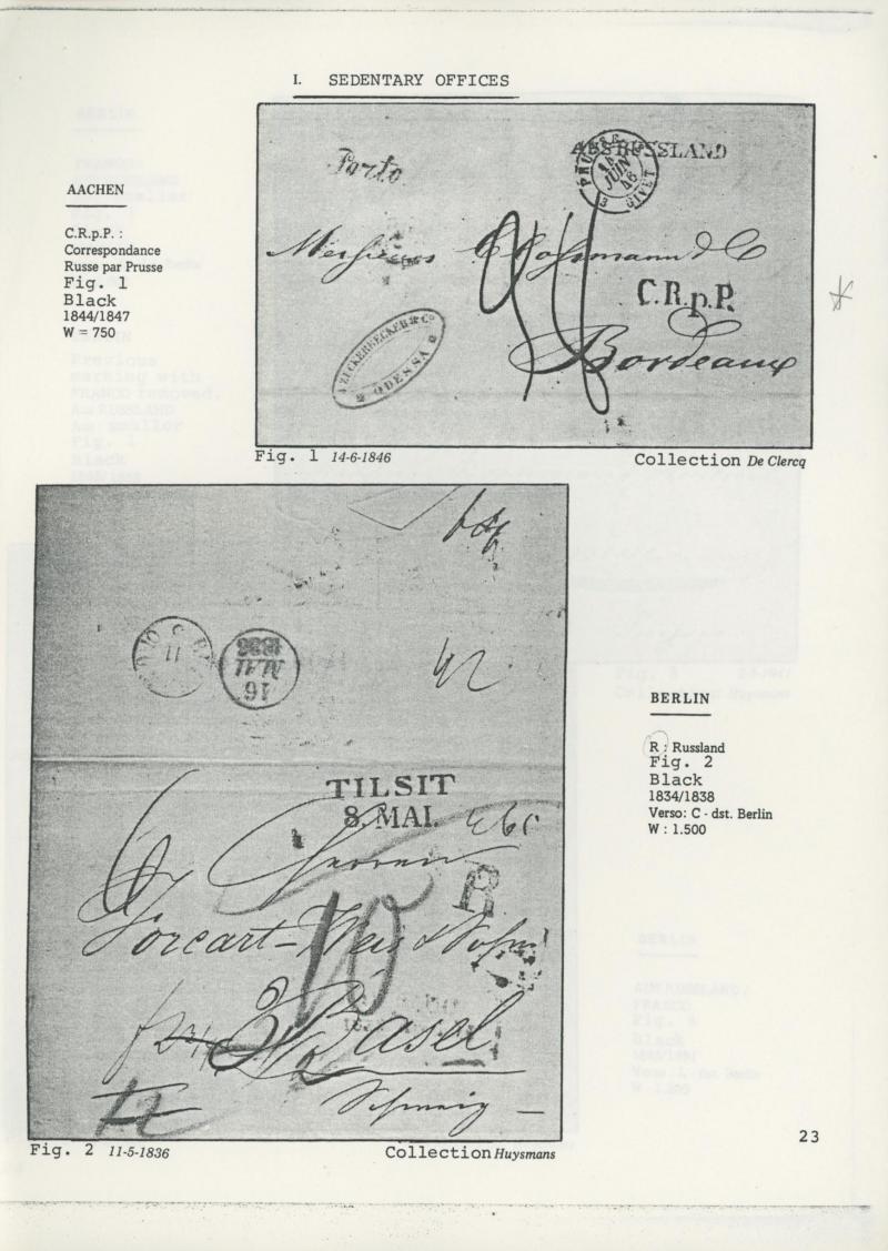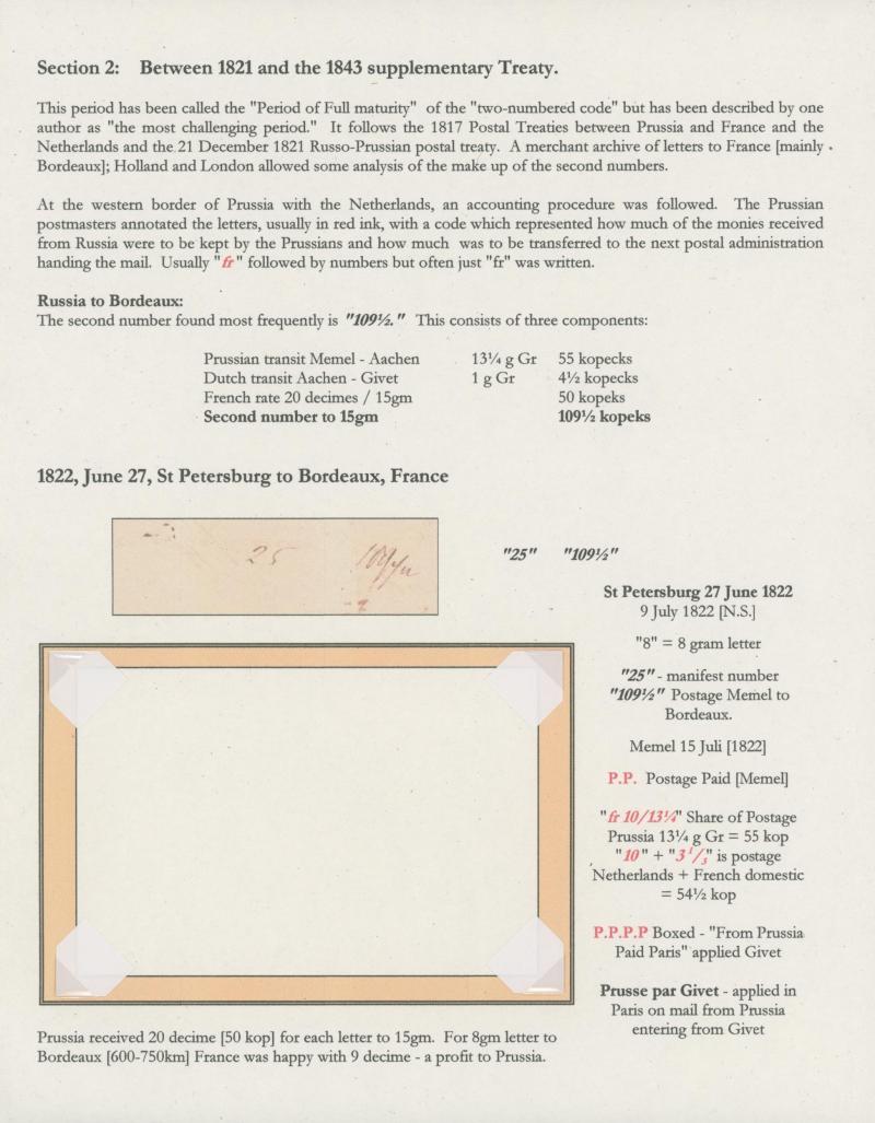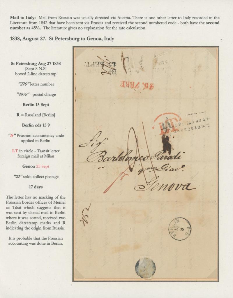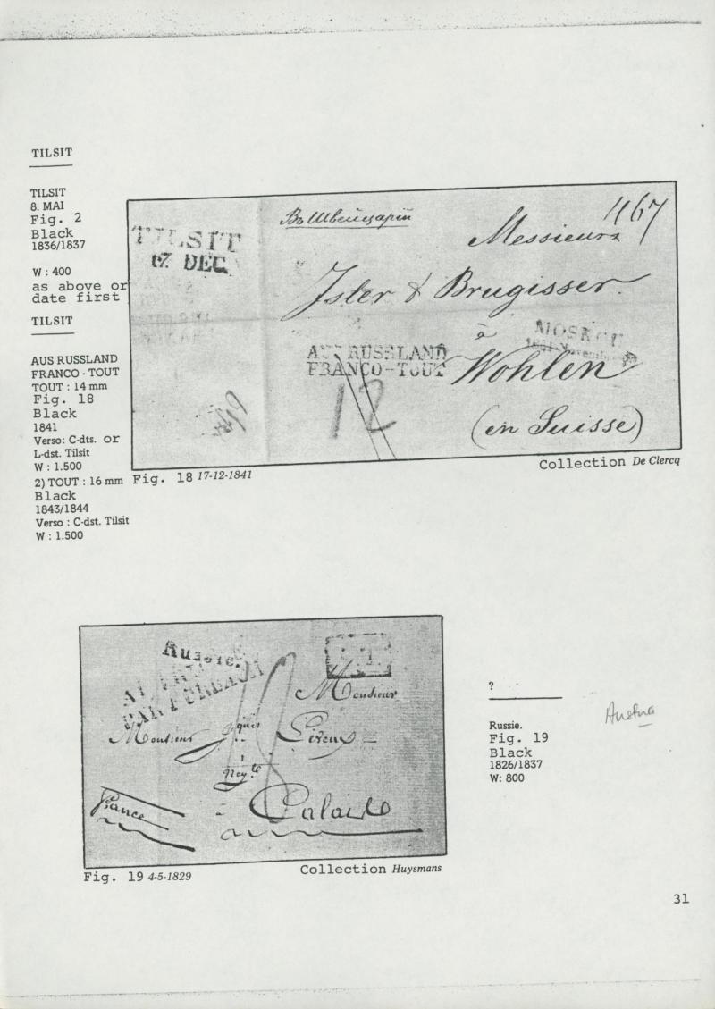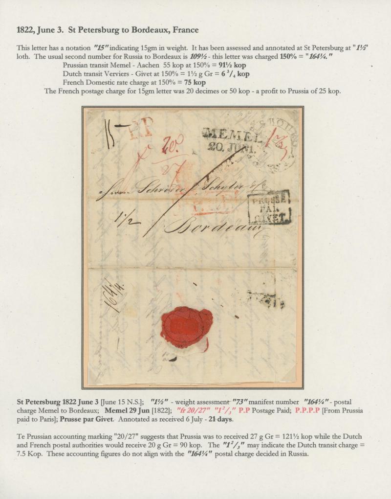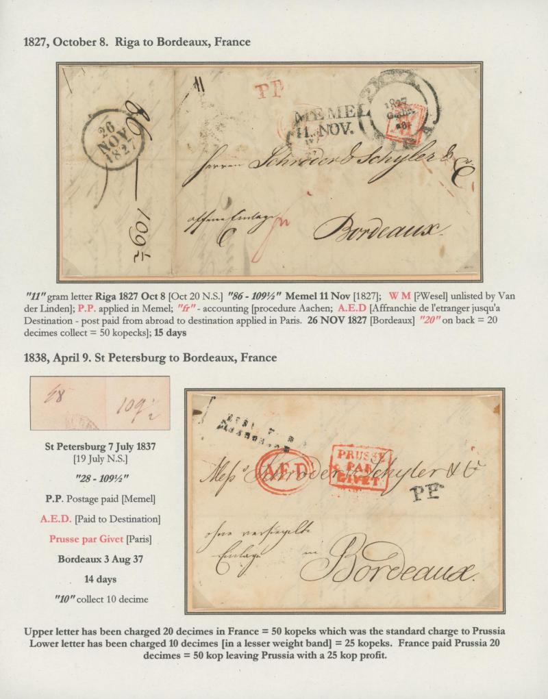 The earliest mails are very scarce: included are two (1808 & 1818) of the approximately 40 recorded. Between 1821 and 1843 arrangements were governed by the Russo-Prussian Postal Treaty.