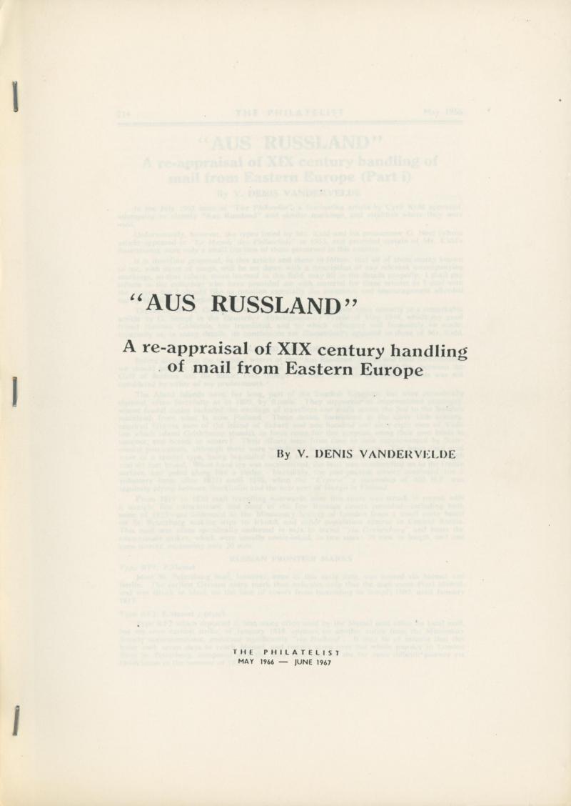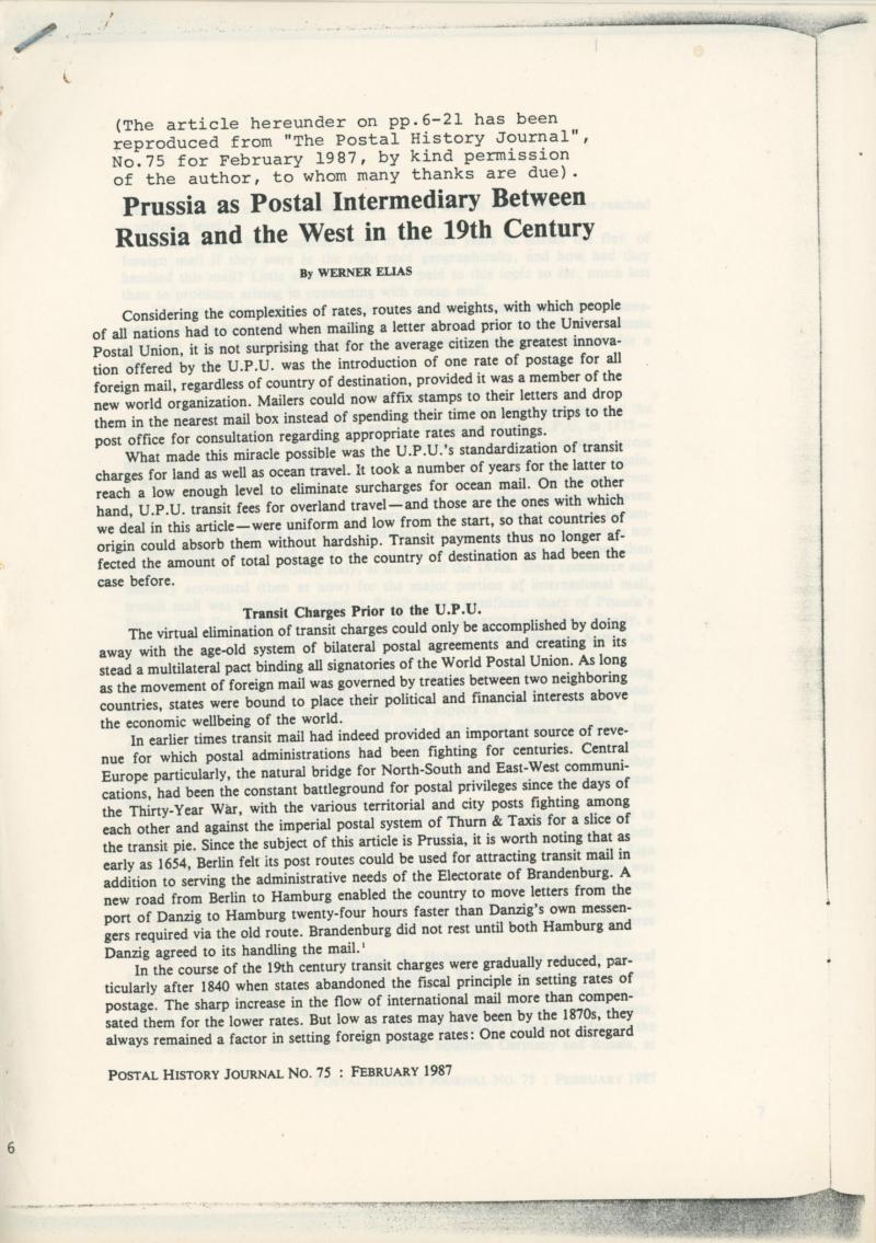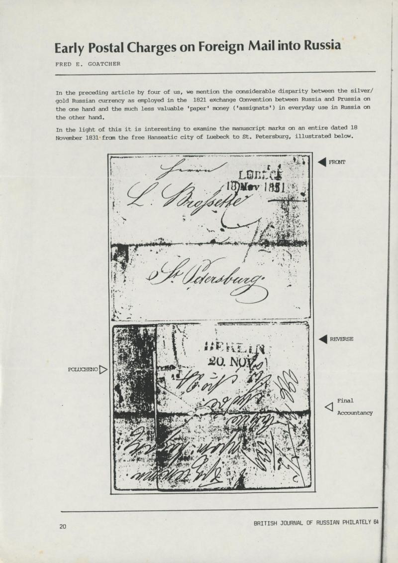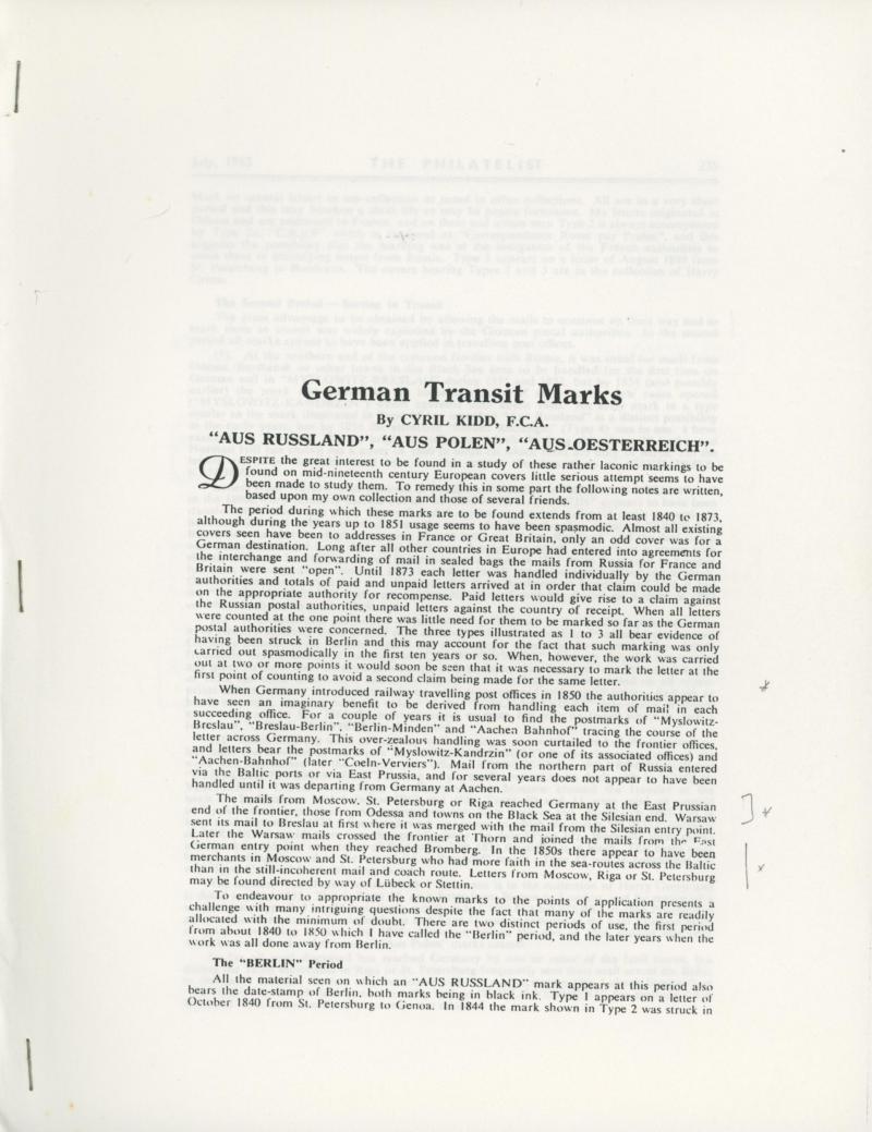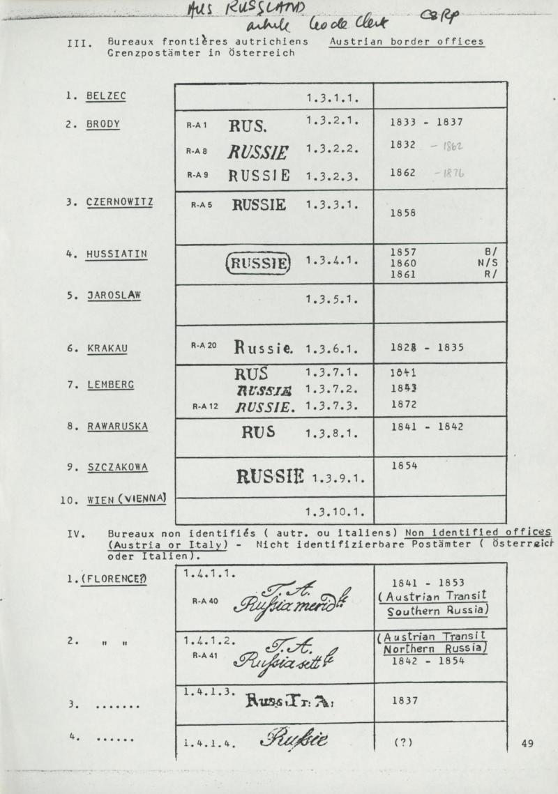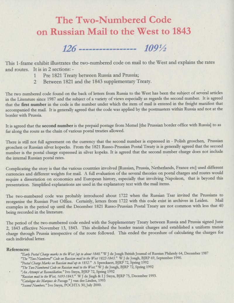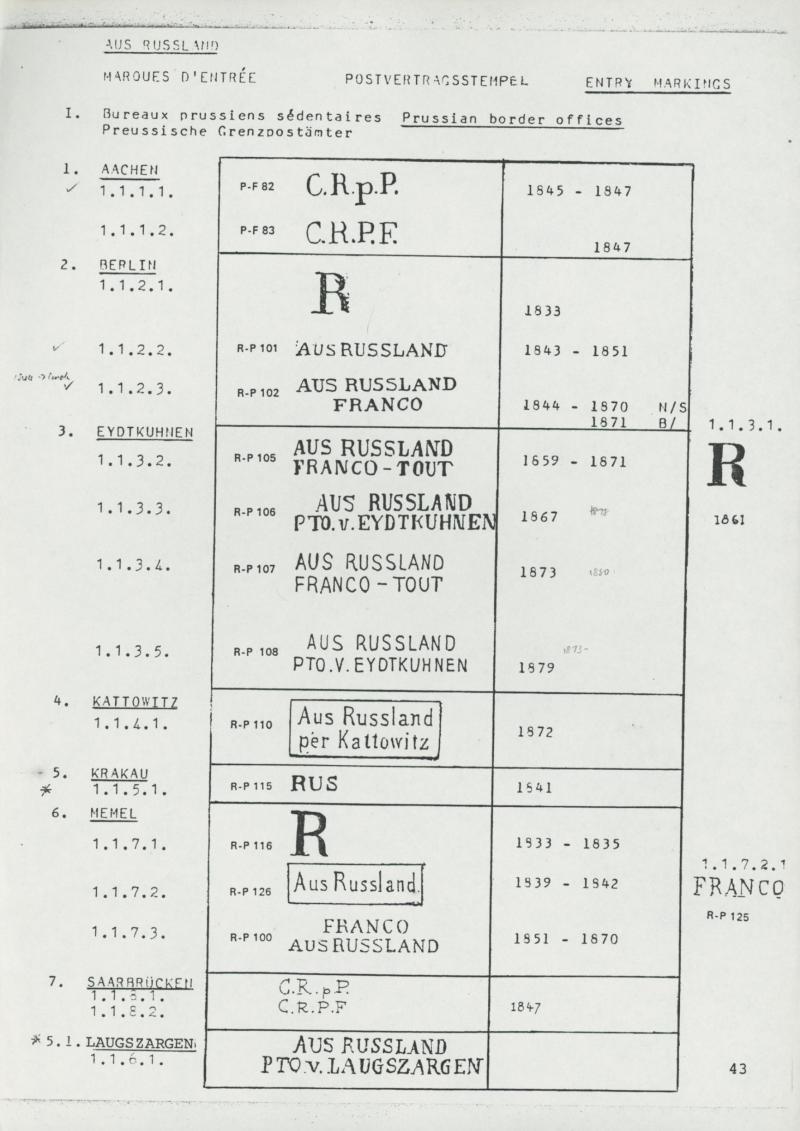 POSTAL HISTORY: 'The Two-Numbered Code on Russian Mail to the West to 1843' being an annotated study of the manuscript endorsements