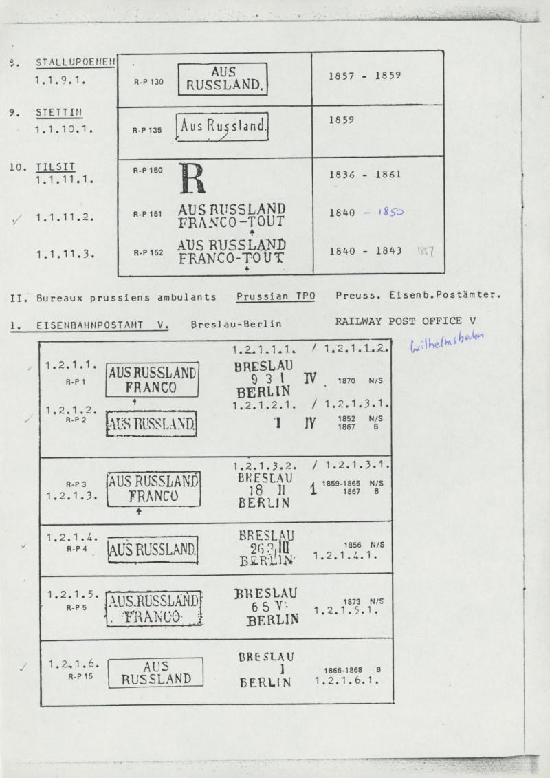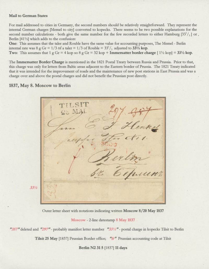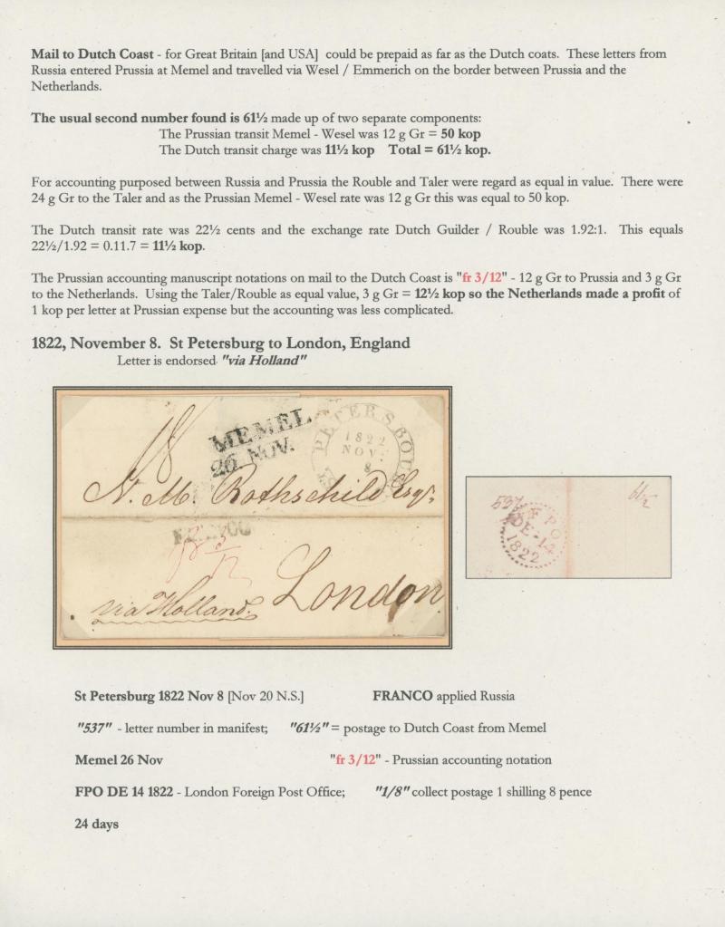 now generally agreed to represent, firstly, the item number on the postal manifest and, secondly, the rate from the Prussian border to destination, good range of Russian handstamps and many postmarked in transit at 'MEMEL' as it was the Prussian