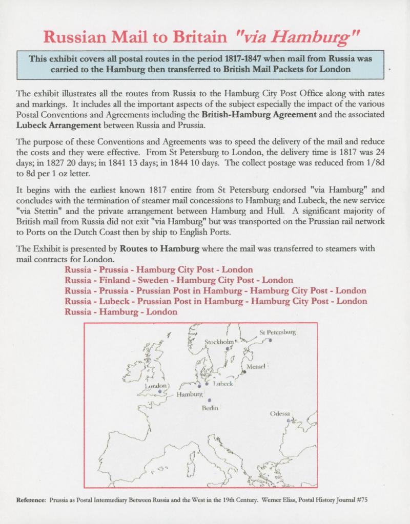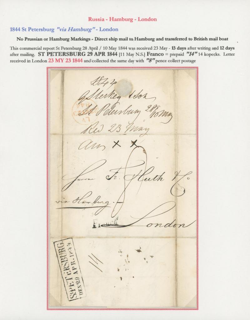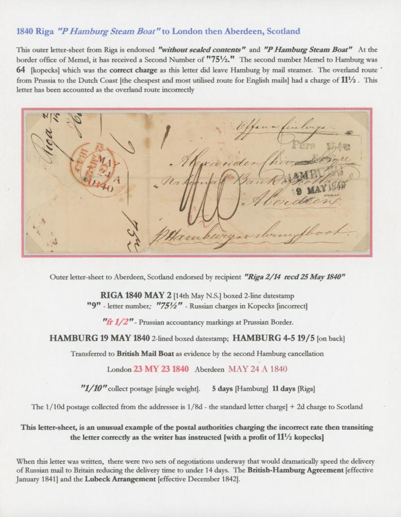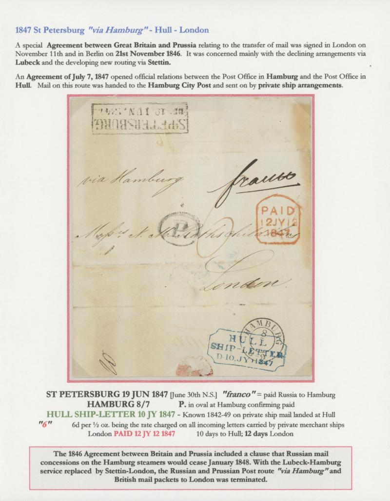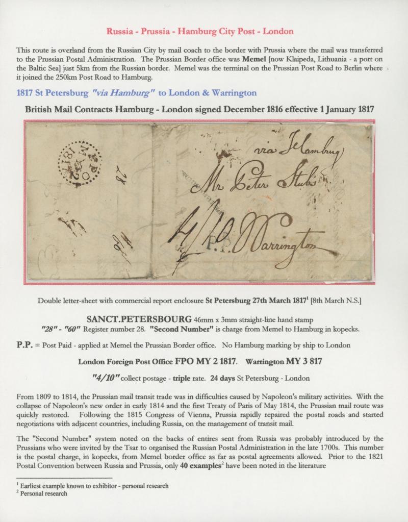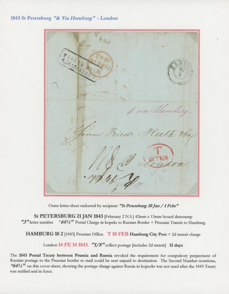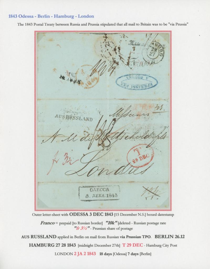 POSTAL HISTORY: 'Russian Mail to Britain via Hamburg 1817-1843' being an extensively written-up One Frame Exhibit identifying mail