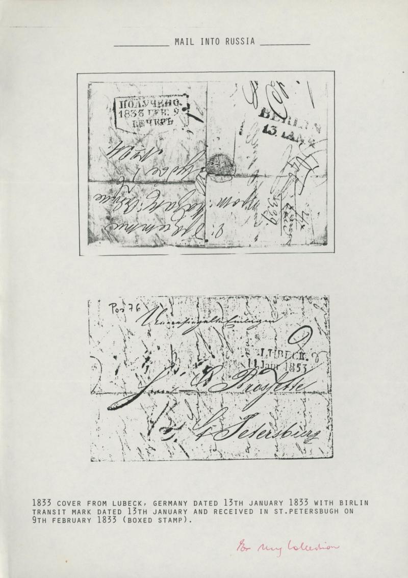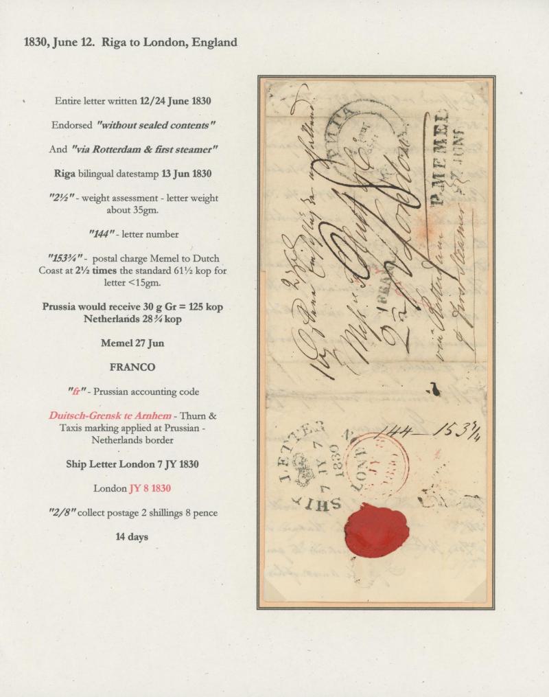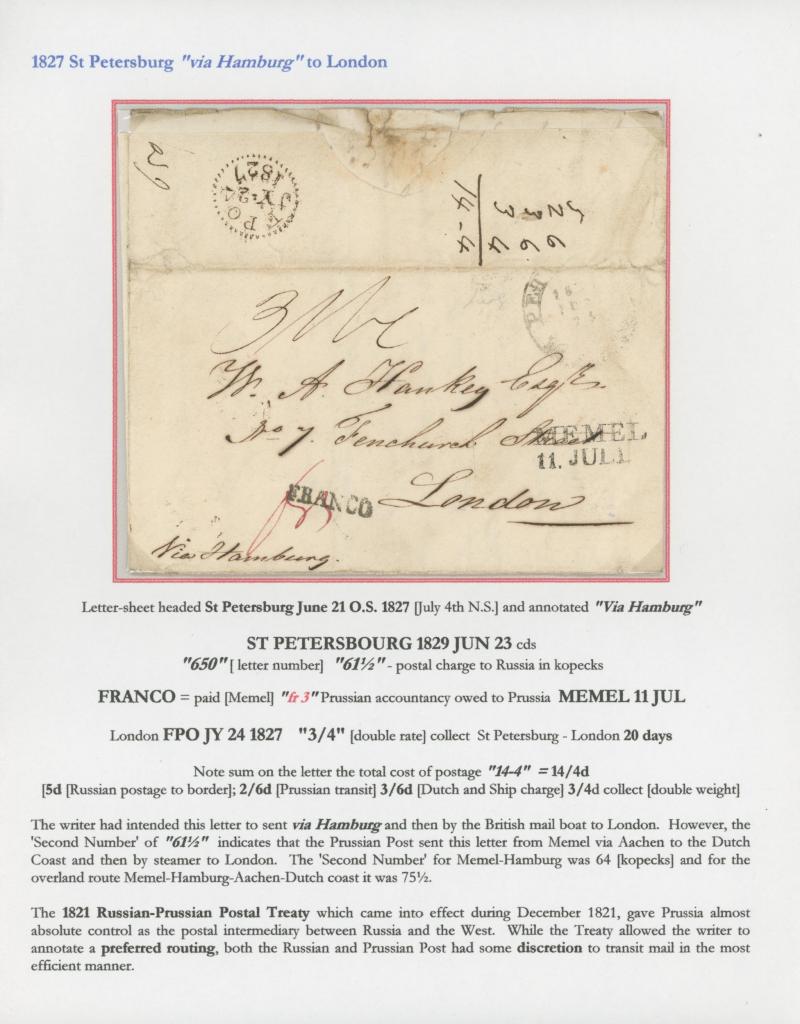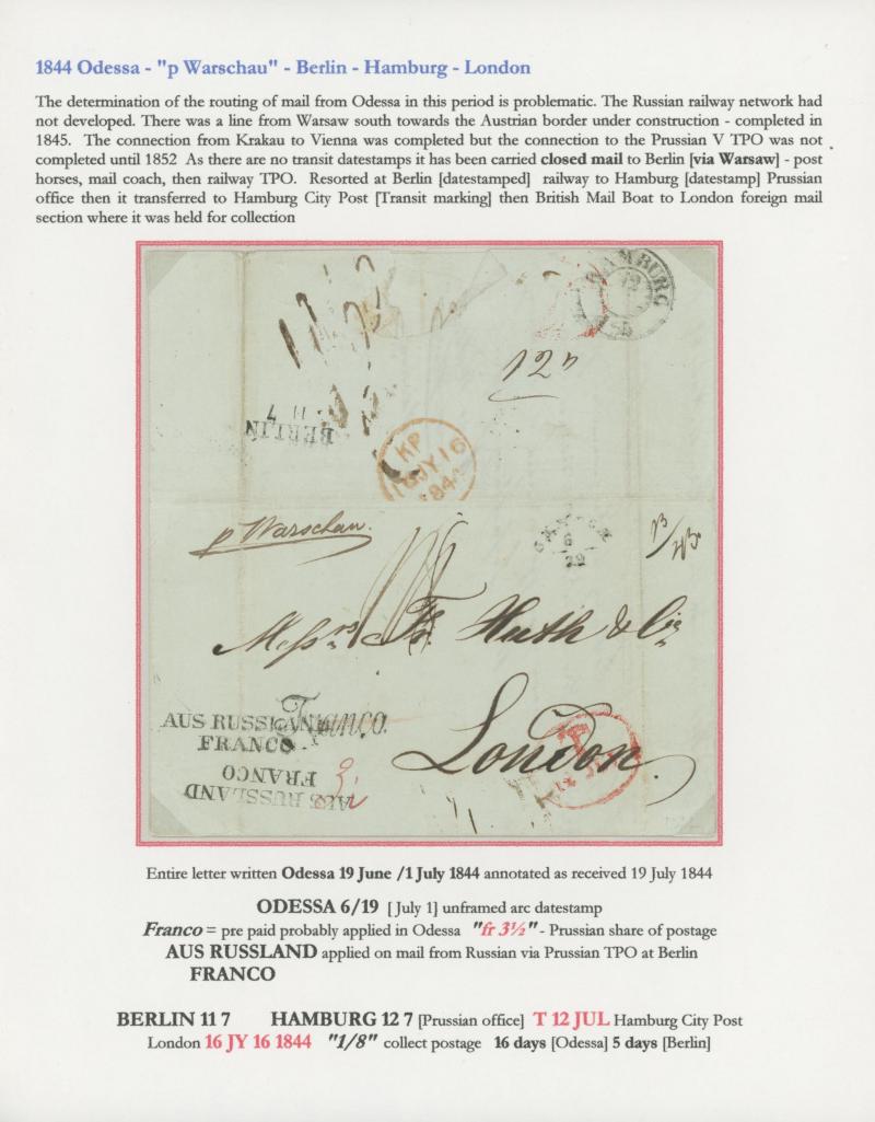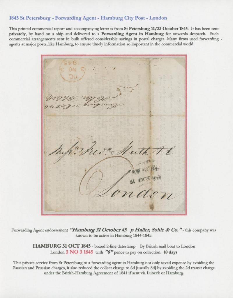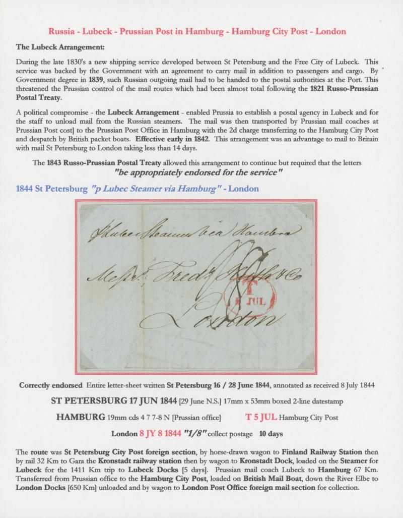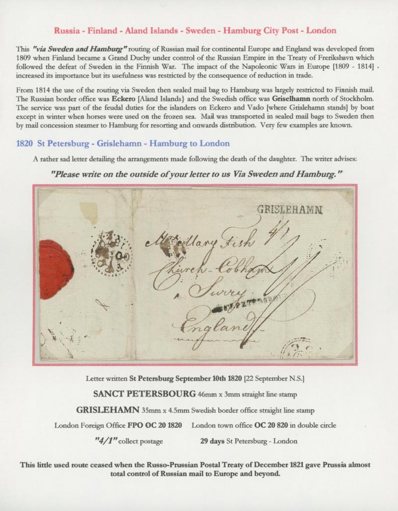 POSTAL HISTORY: 'Russian Mail to Britain via Hamburg 1817-1843' being an extensively written-up One Frame Exhibit identifying mail