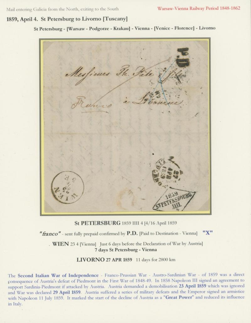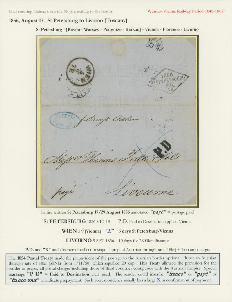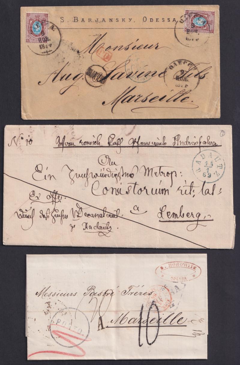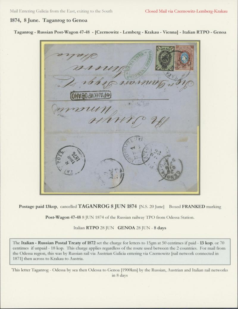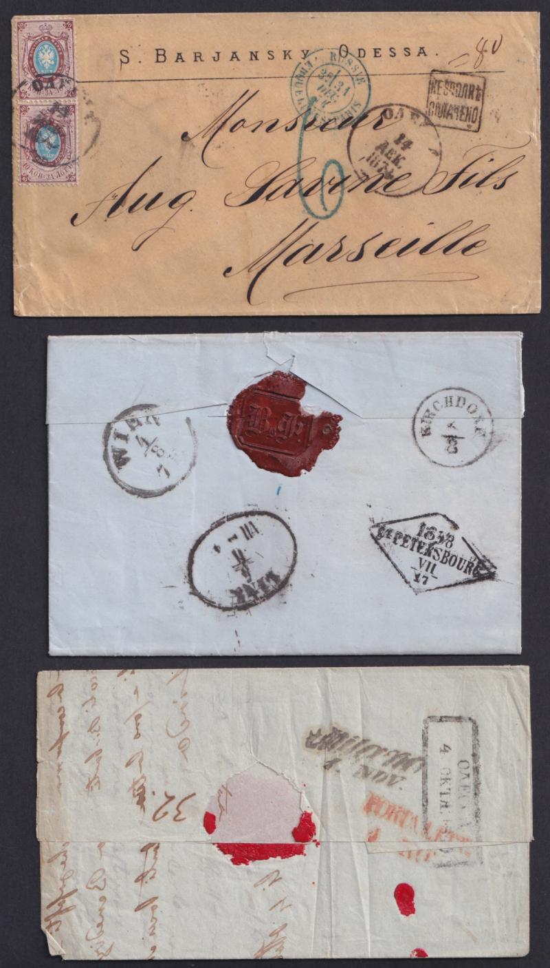 offices, and the impact of burgeoning communications especially the expansion of railway networks. Many items originated in the Crimes, also from Taganrog, Ukraine, Moscow, St Petersburg, Polish towns, etc. Destinations include Trieste, Hungary, the