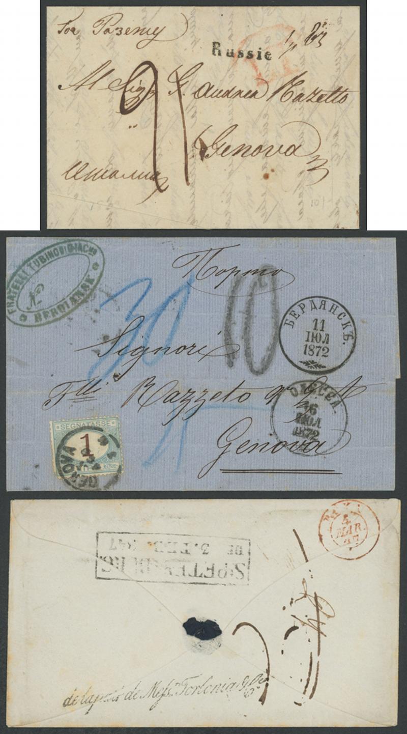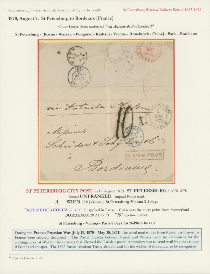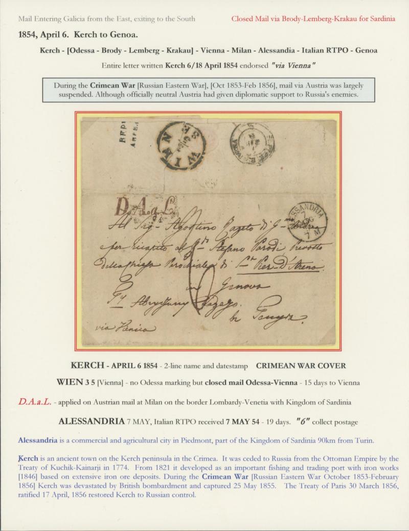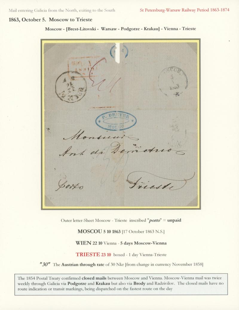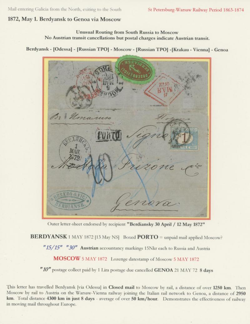 offices, and the impact of burgeoning communications especially the expansion of railway networks. Many items originated in the Crimes, also from Taganrog, Ukraine, Moscow, St Petersburg, Polish towns, etc. Destinations include Trieste, Hungary, the