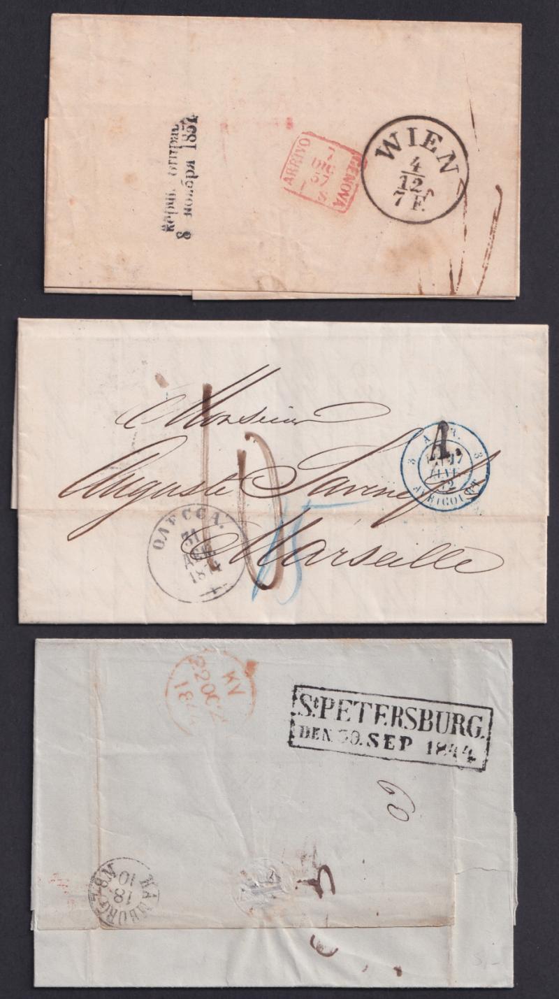 carried by the various routes, lots of rate markings & instructional handstamps, includes three items carried between Finland & Lubeck after Prussia opened an office in Lubeck, then one via Aland (then under Russian control) & Sweden with superb