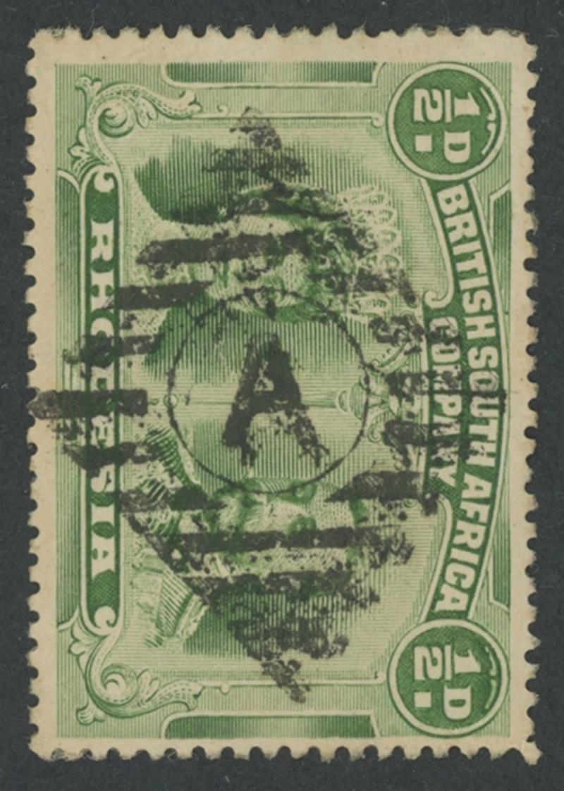 Salisbury: 'A'-in-Diamond-of-Bars killer (Proud K3), largely very fine complete strike on Double Heads ½d green. PO -.9.1890.