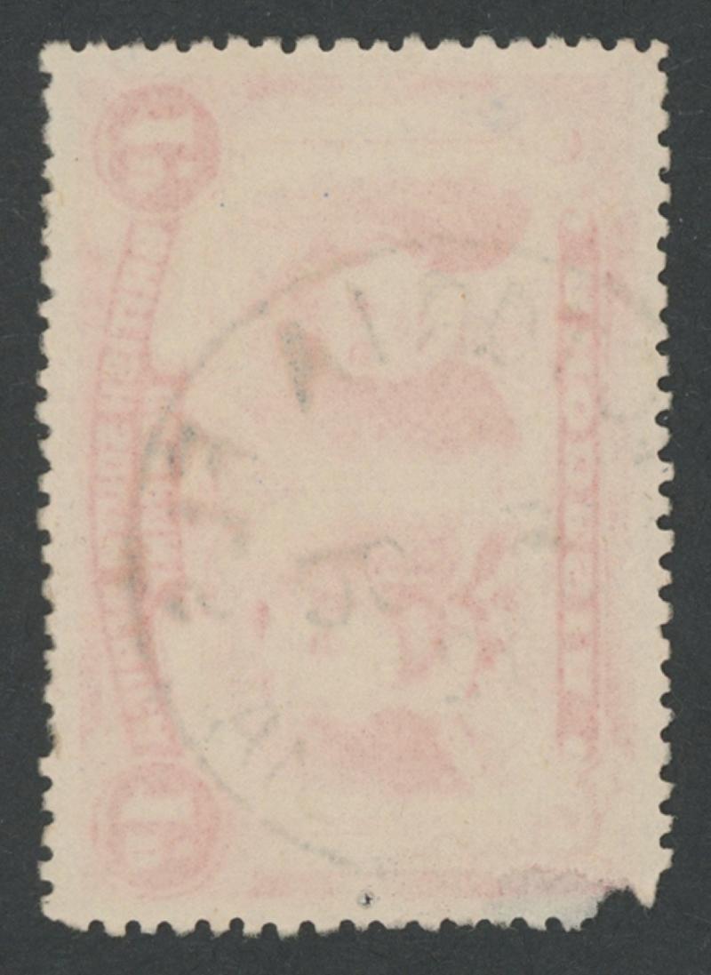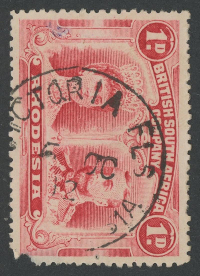 Heads 1d carmine lake. Handbook Very Rare. PO circa 1900; renamed North Melsetter 1.5.1911; closed 23.11.1920. Robert M Gibbs' two similar strikes sold together for £1080. [Melsetter District, Southern Rhodesia] (Image1) (Image2)