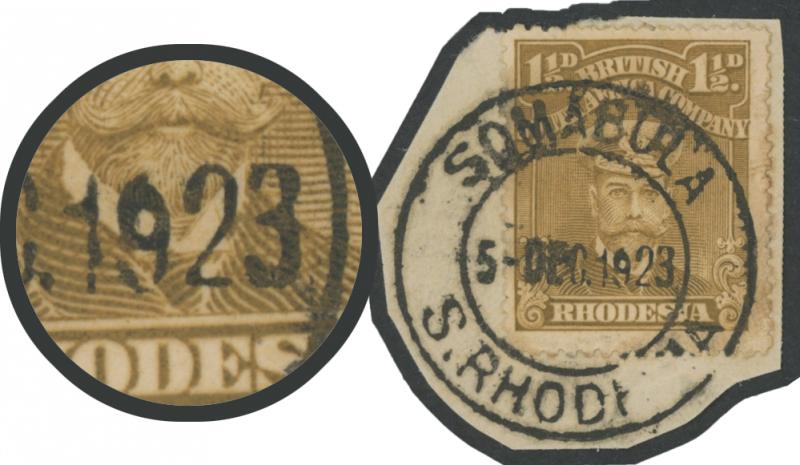 Somabula (3): 'SOMABULA/5-.DEC.1923/S.RHODE[S]IA' double-ring cds (Proud D3) with '19' in small figures, largely very fine complete
