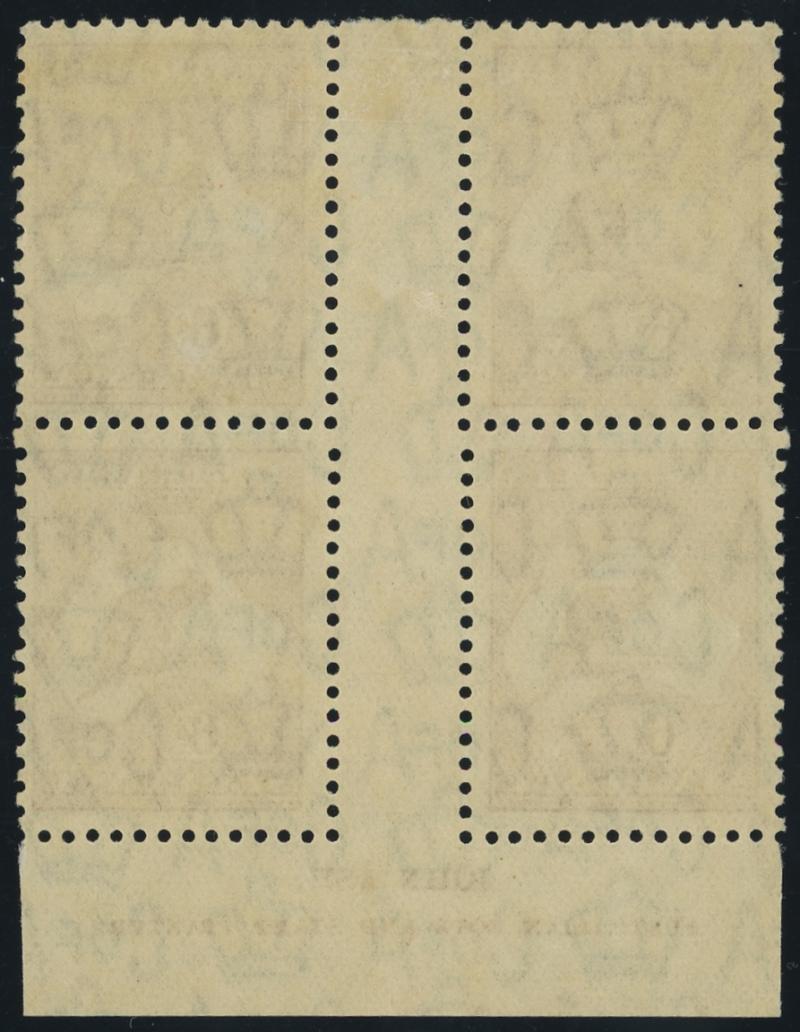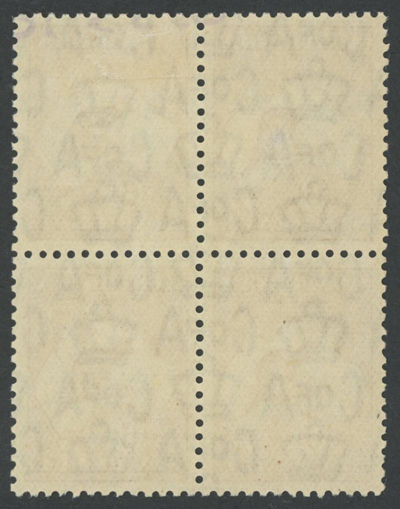9d violet SG 133 Plate 4 (lower) John Ash Imprint block of 4 (Second State with Large Screw Hole) ACSC 29(4)zb, lightly aged gum,