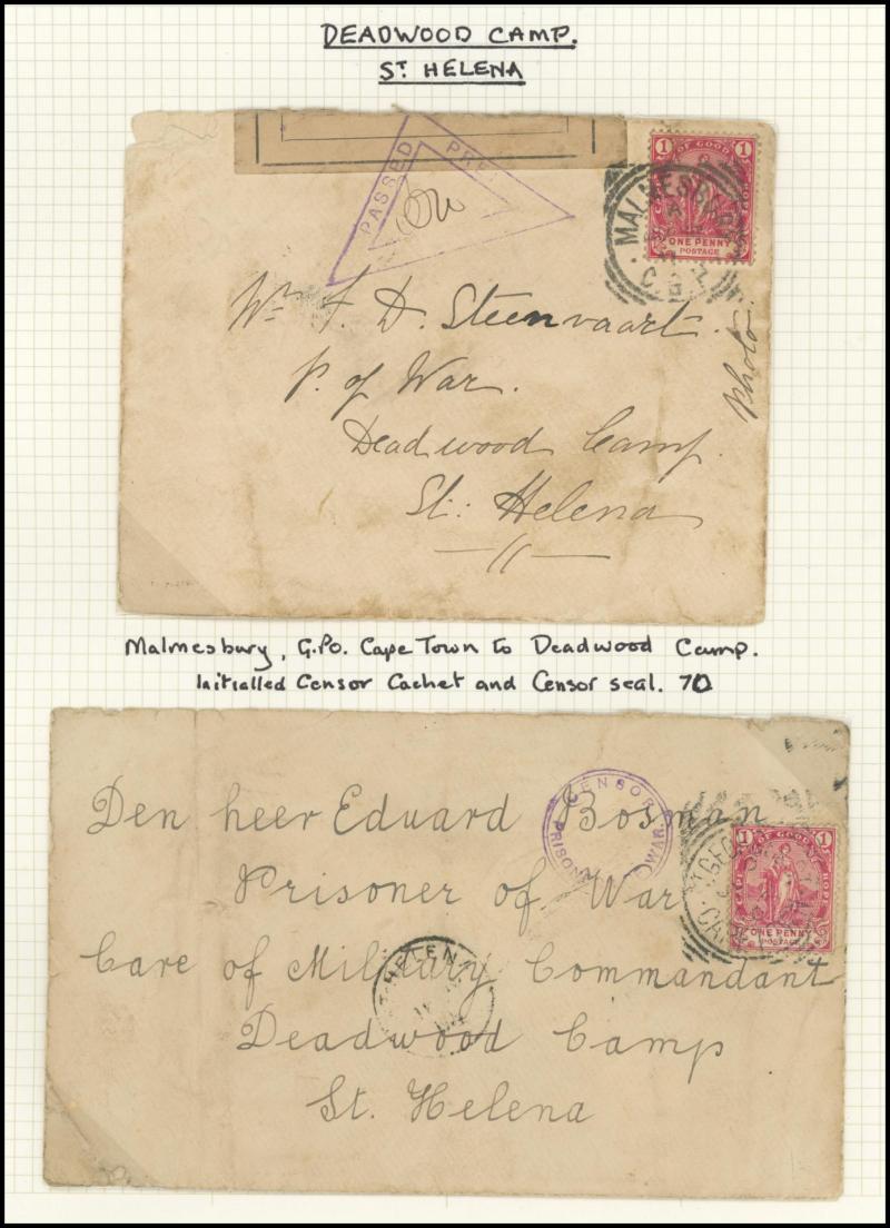 "Broad Bottom Camp" x2, "Deadwood Camp" x2 & "Deadwood Bottom Camp" (!), Transvaal-Mozambique-Cape-St Helena with no redirection to the island, PPCs of the island x5 (one from St Helena to Denmark & one from Holland to the Orange River Colony